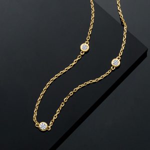 .25 Carat Bezel-Set Lab-Grown Diamond Solitaire Necklace in 14kt Yellow Gold. 16″