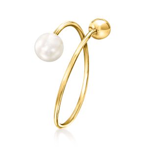 5mm Cultured Pearl and 14kt Yellow Gold Bypass Ring