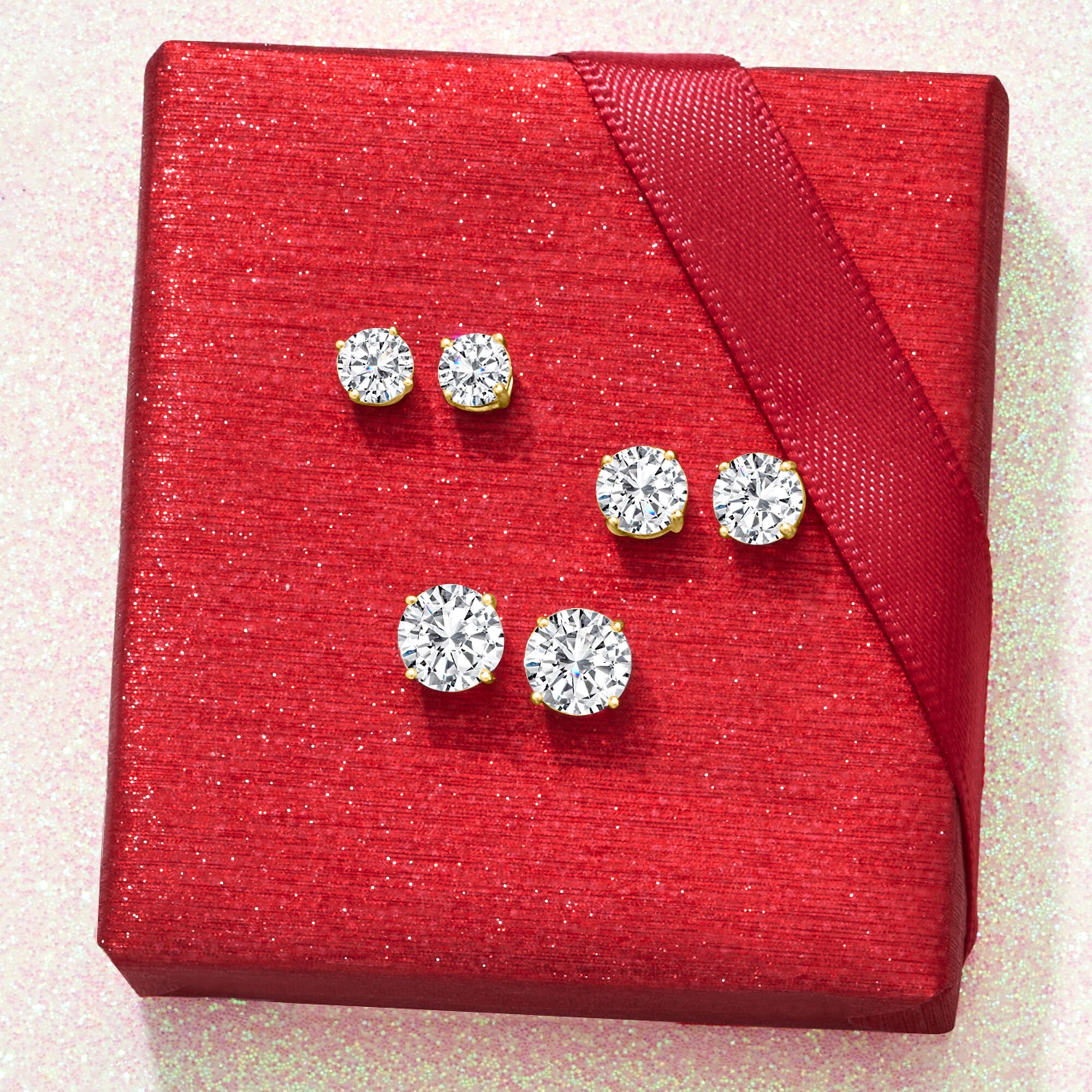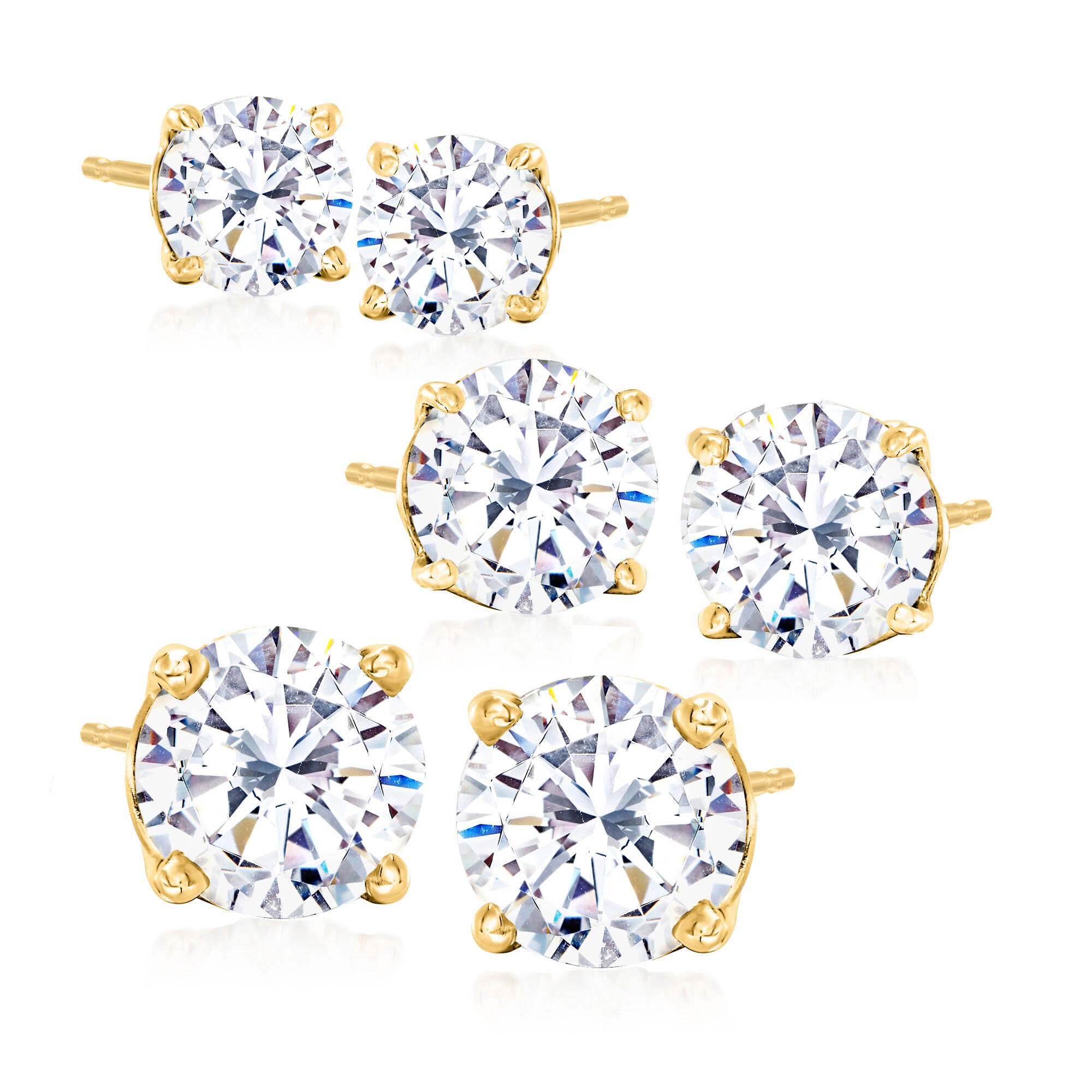 6.00 ct. t.w. CZ Jewelry Set: Three Pairs of Stud Earrings in 18kt Gold Over Sterling