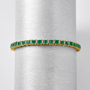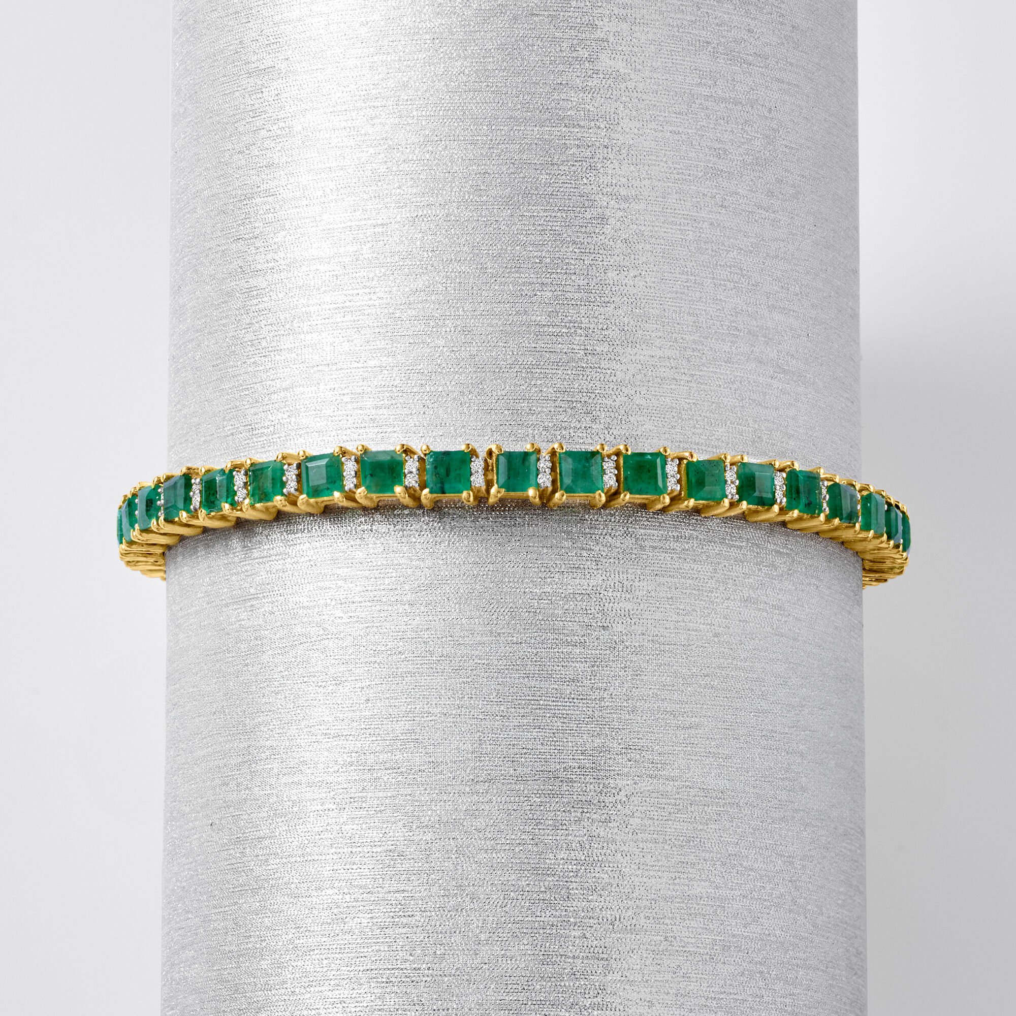 6.00 ct. t.w. Emerald and .50 ct. t.w. Diamond Tennis Bracelet in 18kt Gold Over Sterling