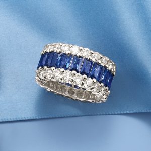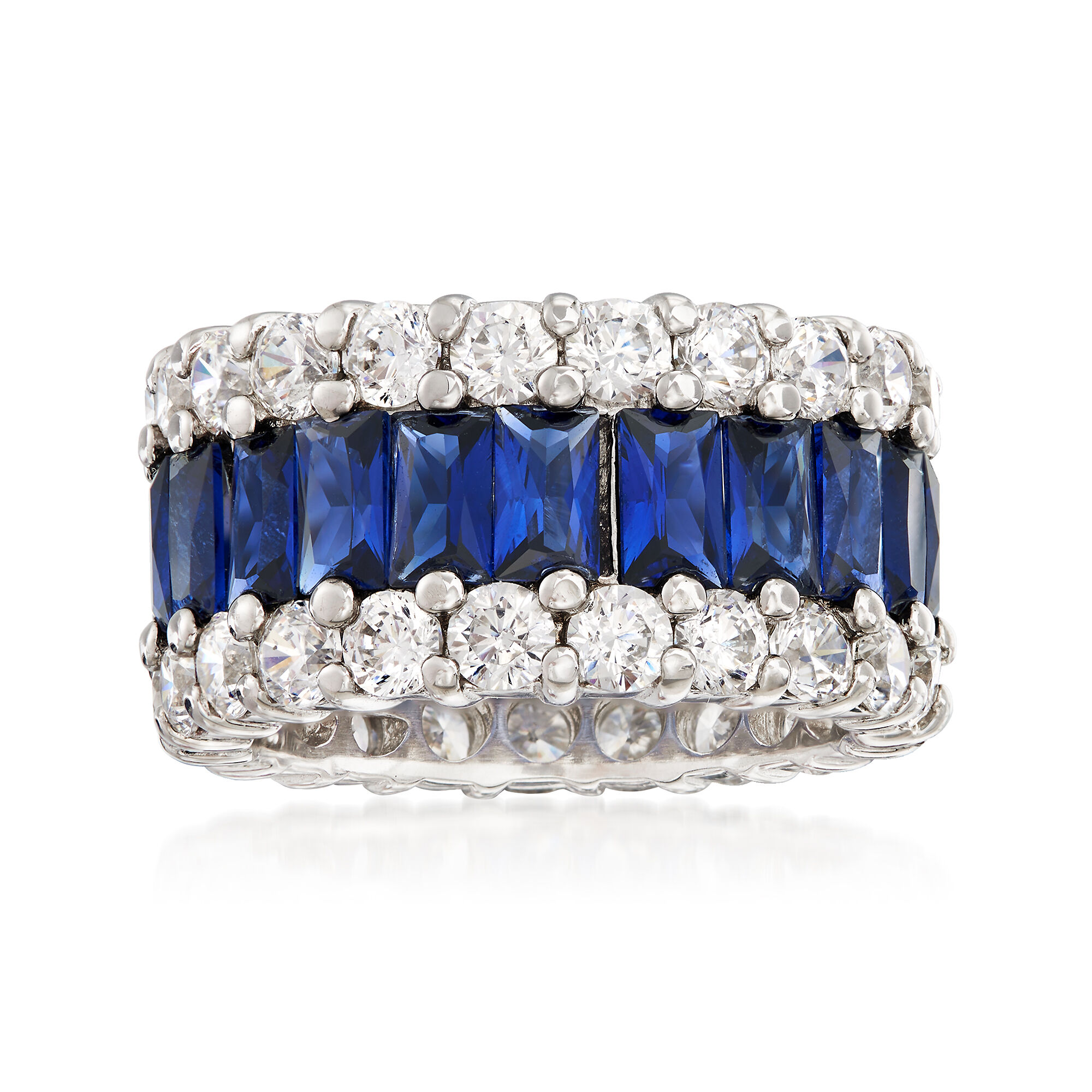 6.00 ct. t.w. Simulated Sapphire and 4.00 ct. t.w. CZ Eternity Band in Sterling Silver