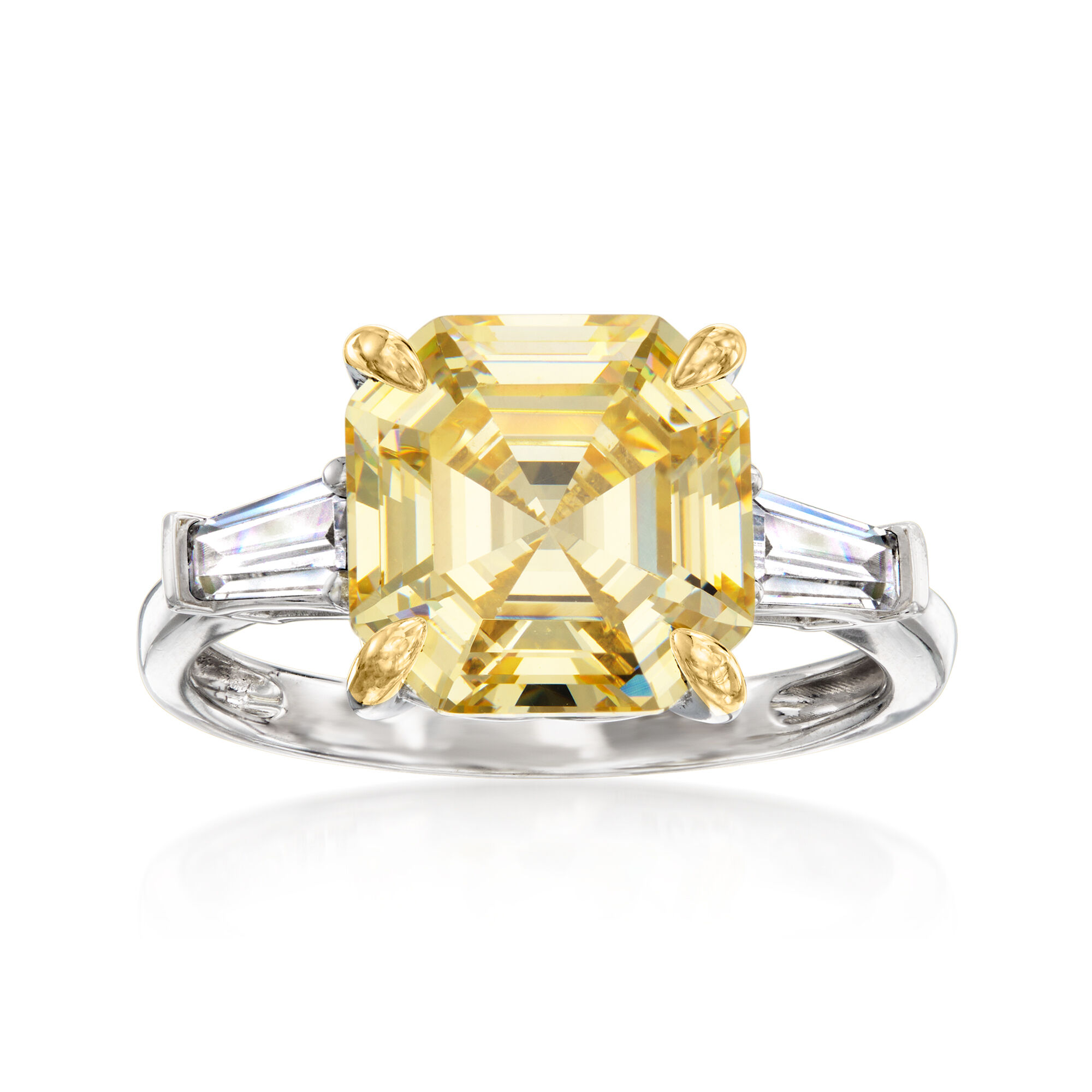 6.00 ct. t.w. Yellow and White CZ Ring in Sterling Silver with 18kt Gold Over Sterling