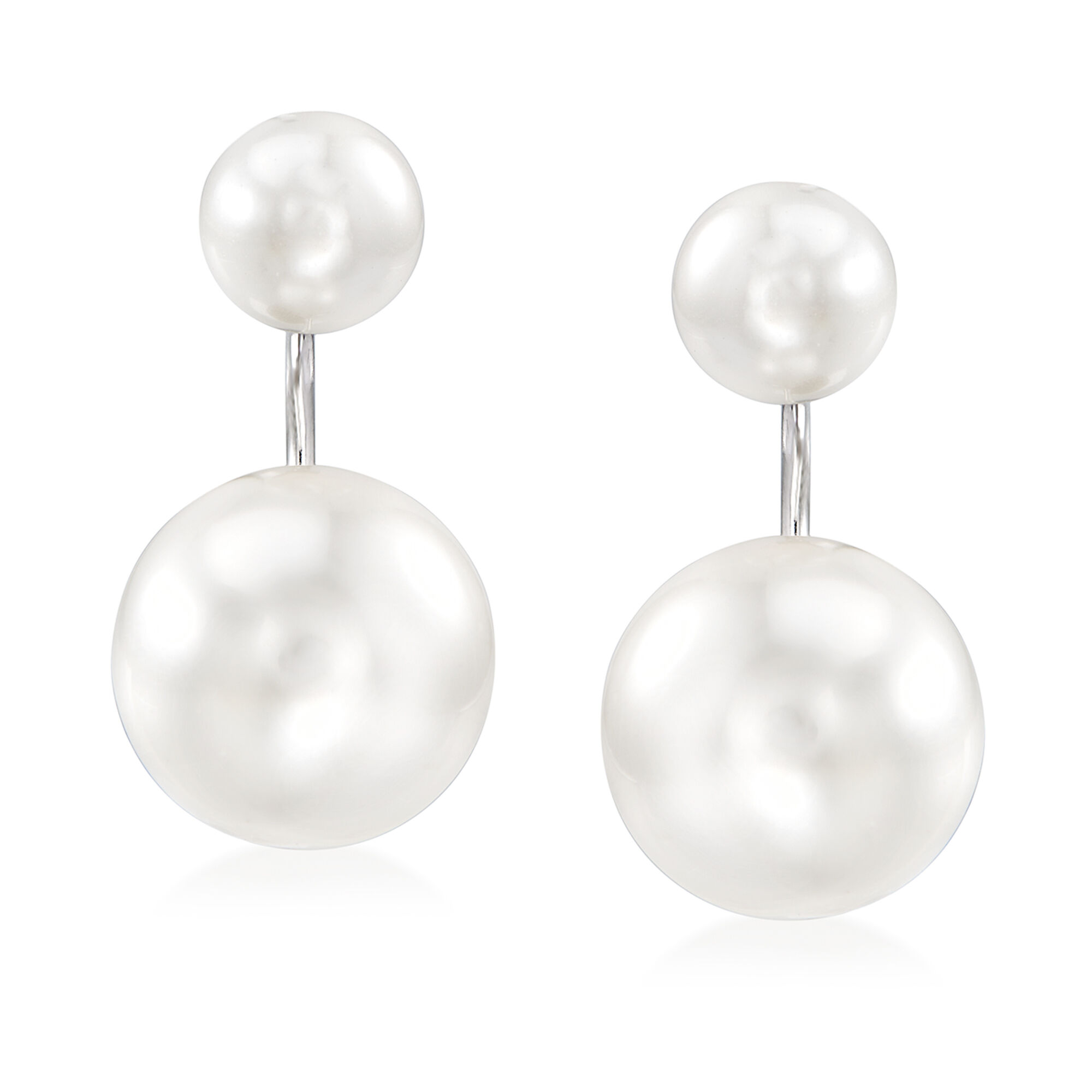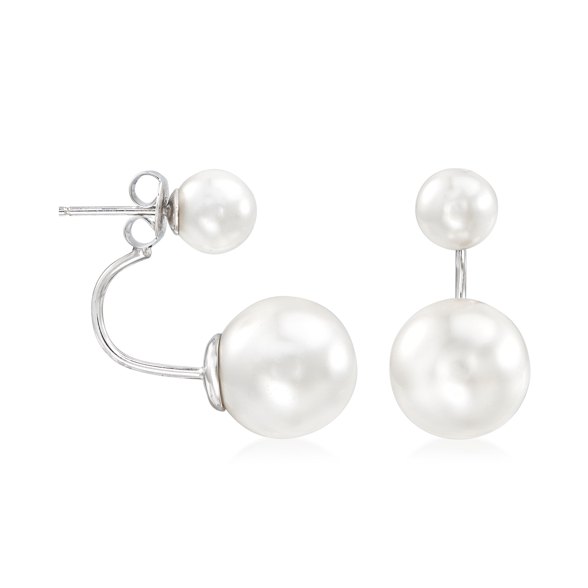 6.5-12.5mm Shell Pearl Front-Back Earrings in Sterling Silver
