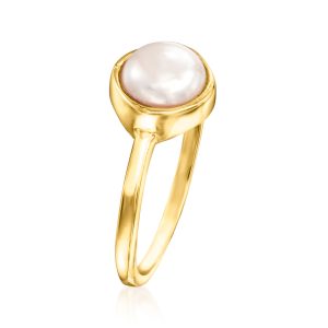 6.5-7mm Cultured Button Pearl Ring in 18kt Gold Over Sterling