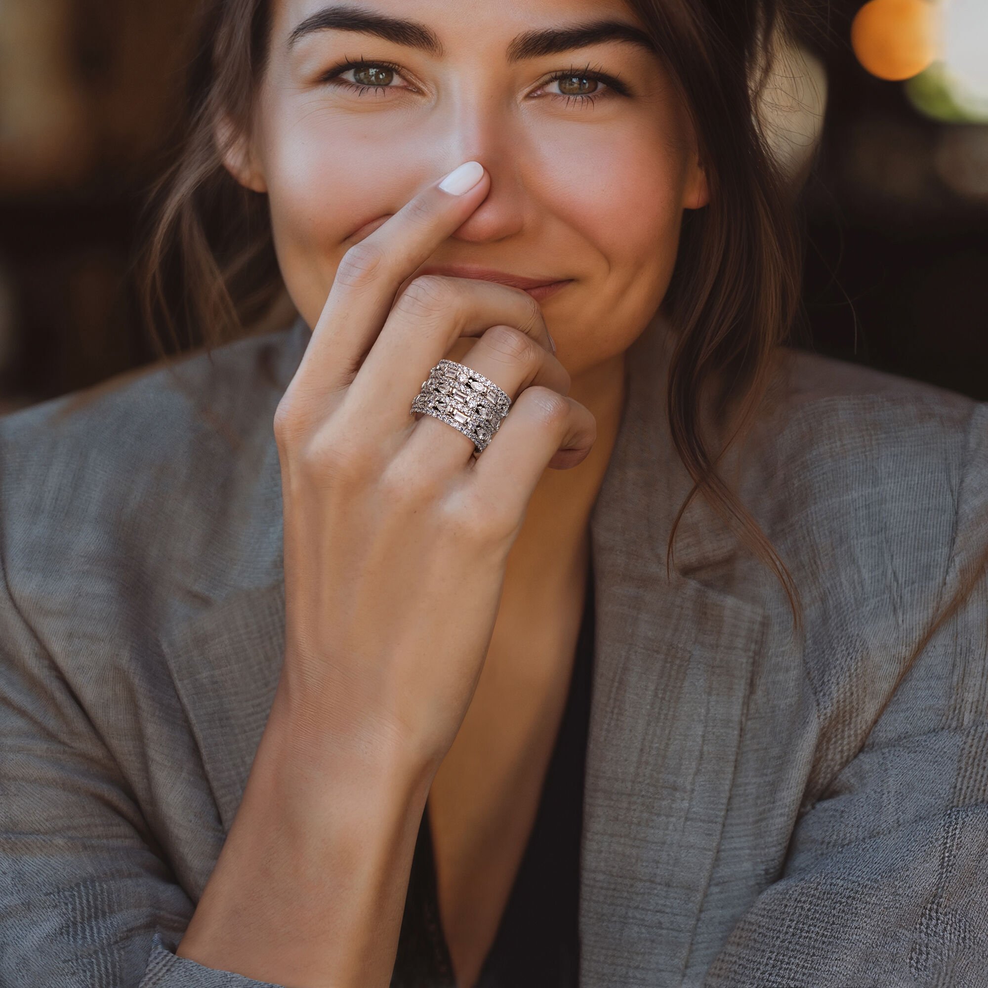 6.56 ct. t.w. Multi-Shaped CZ Multi-Row Eternity Band in Sterling Silver