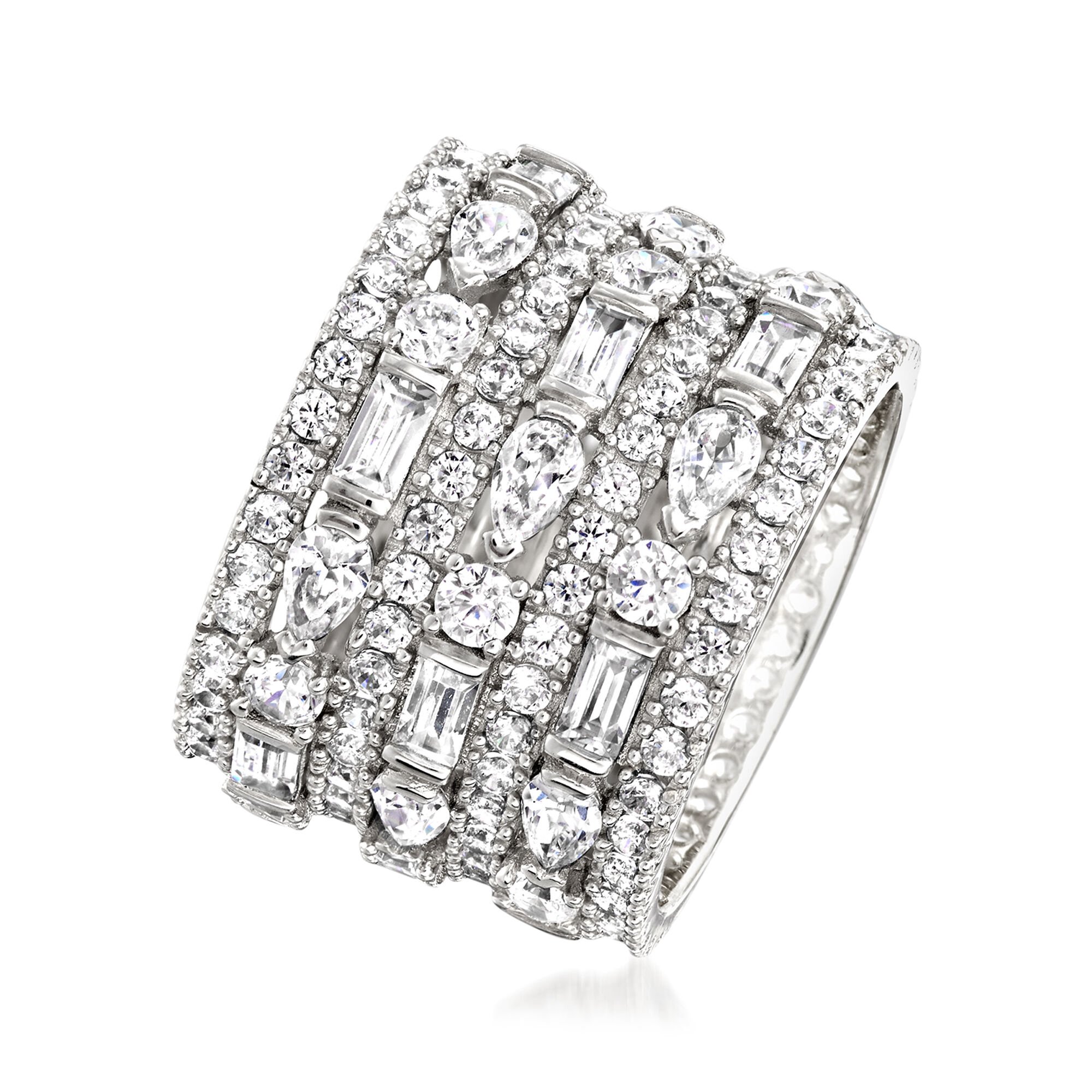 6.56 ct. t.w. Multi-Shaped CZ Multi-Row Eternity Band in Sterling Silver