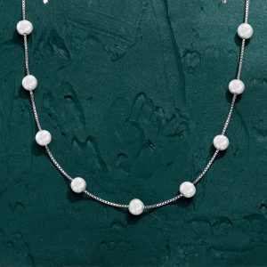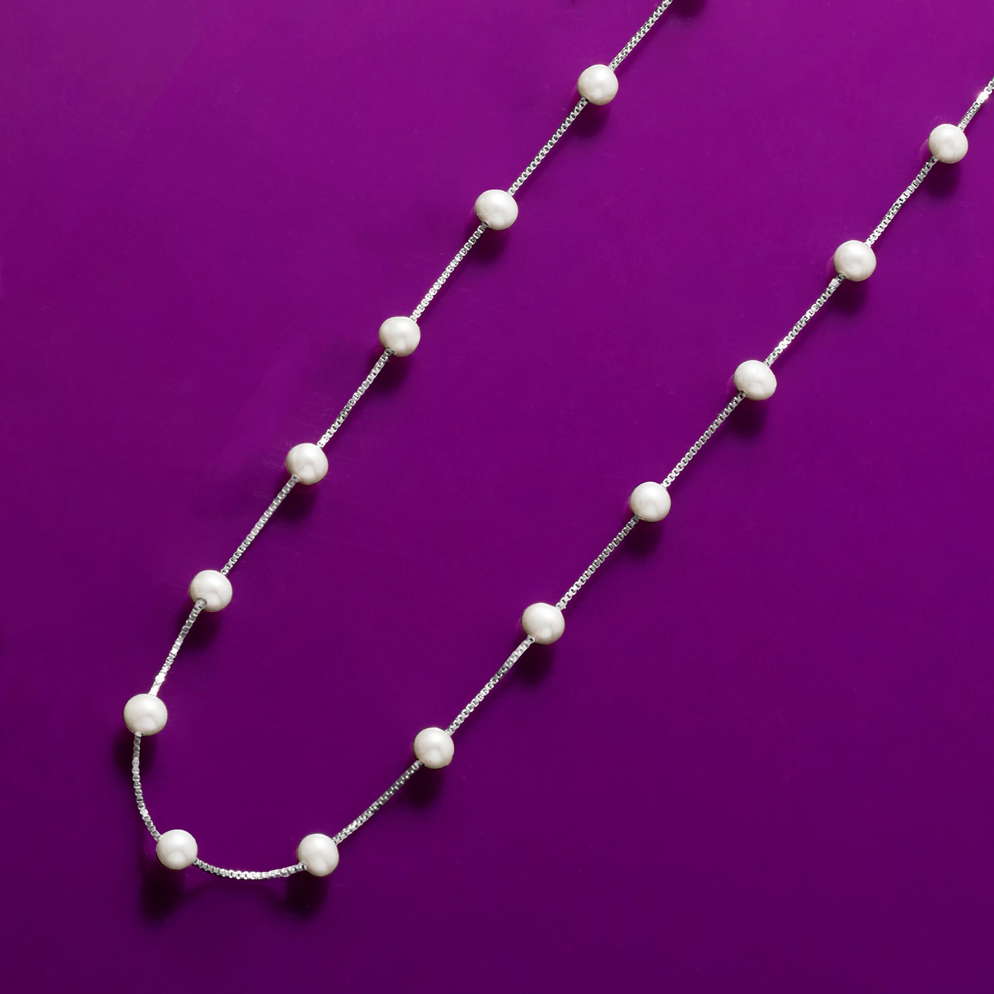 6-6.5mm Cultured Pearl Station Necklace in Sterling Silver