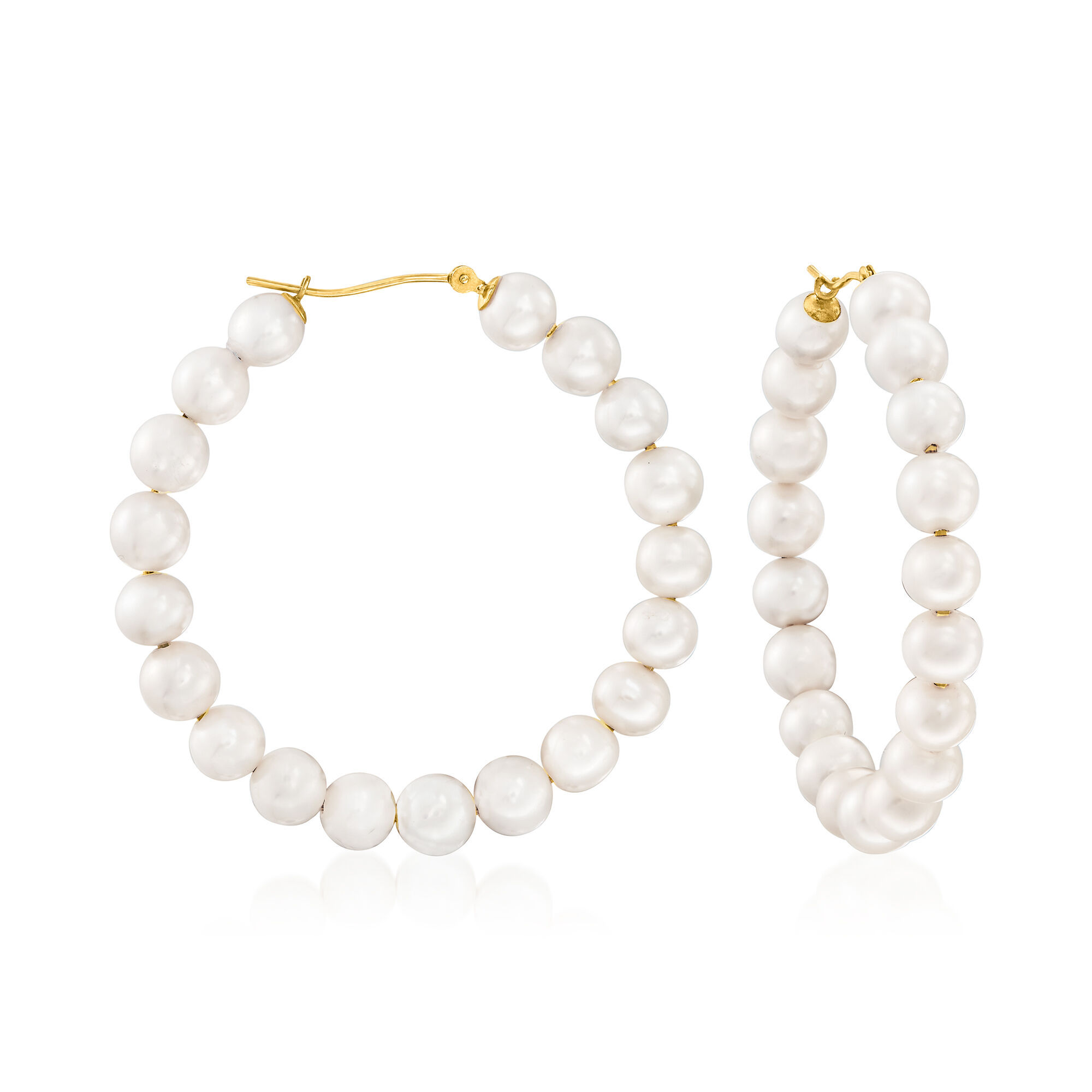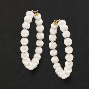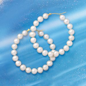 6-7mm Cultured Pearl Hoop Earrings in 14kt Yellow Gold. 1 7/8″