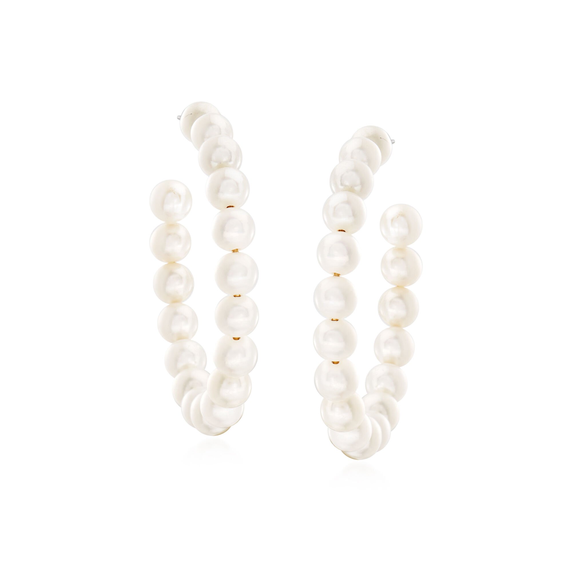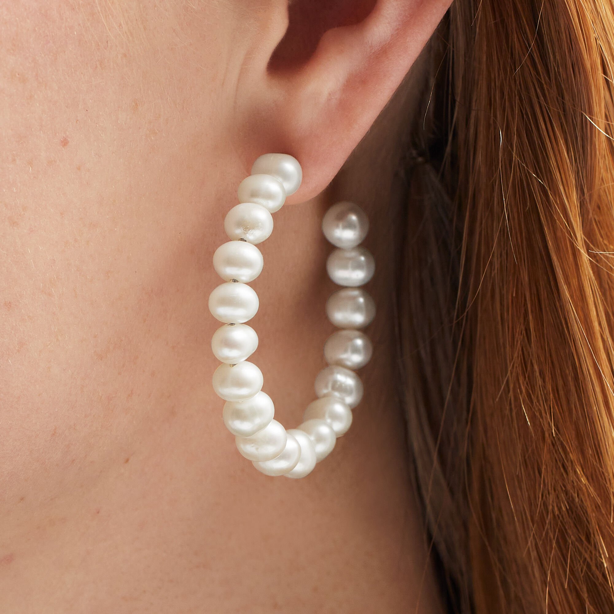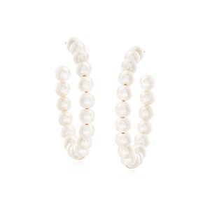 6-7mm Cultured Pearl Hoop Earrings in Sterling Silver. 1 3/4″