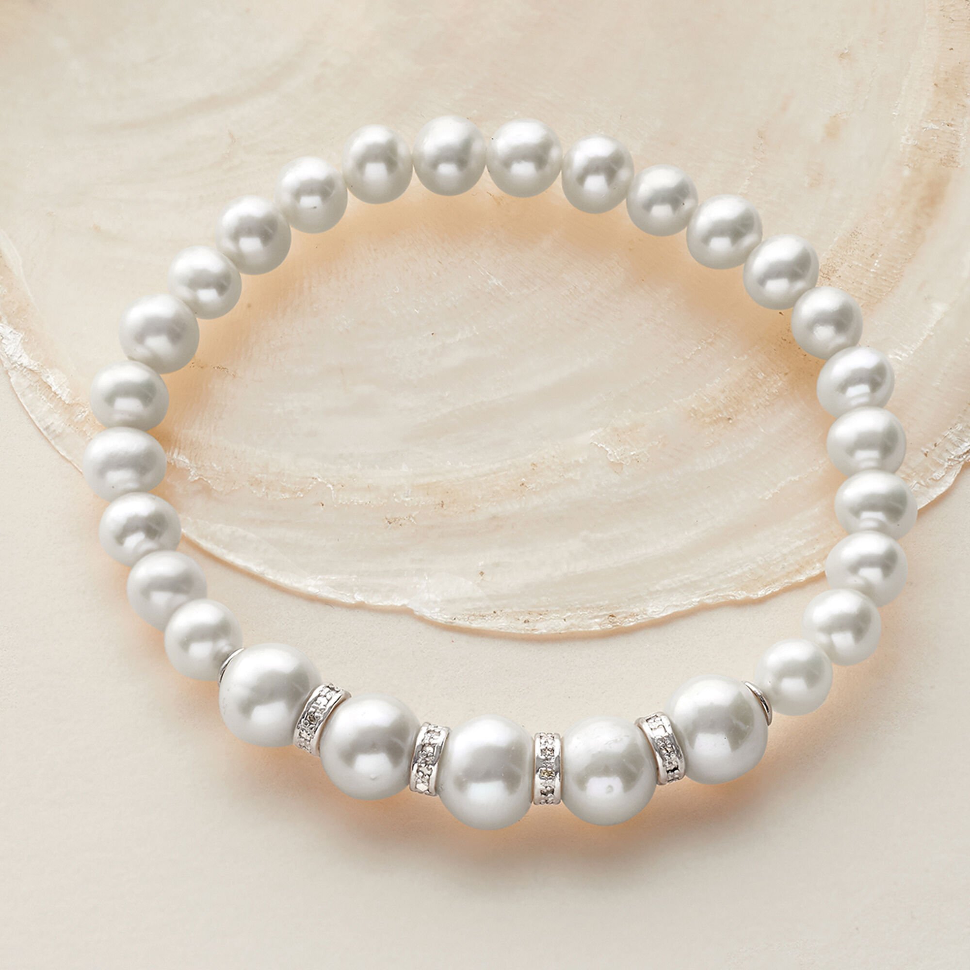6-8.5mm Cultured Pearl and .25 ct. t.w. Diamond Stretch Bracelet with Sterling Silver