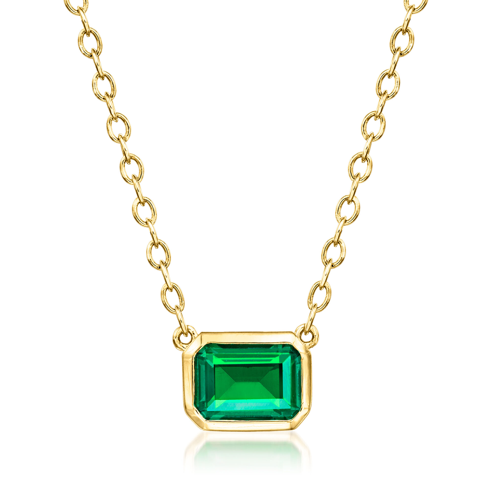 .60 Carat Lab-Grown Emerald Necklace in 18kt Gold Vermeil. 16″