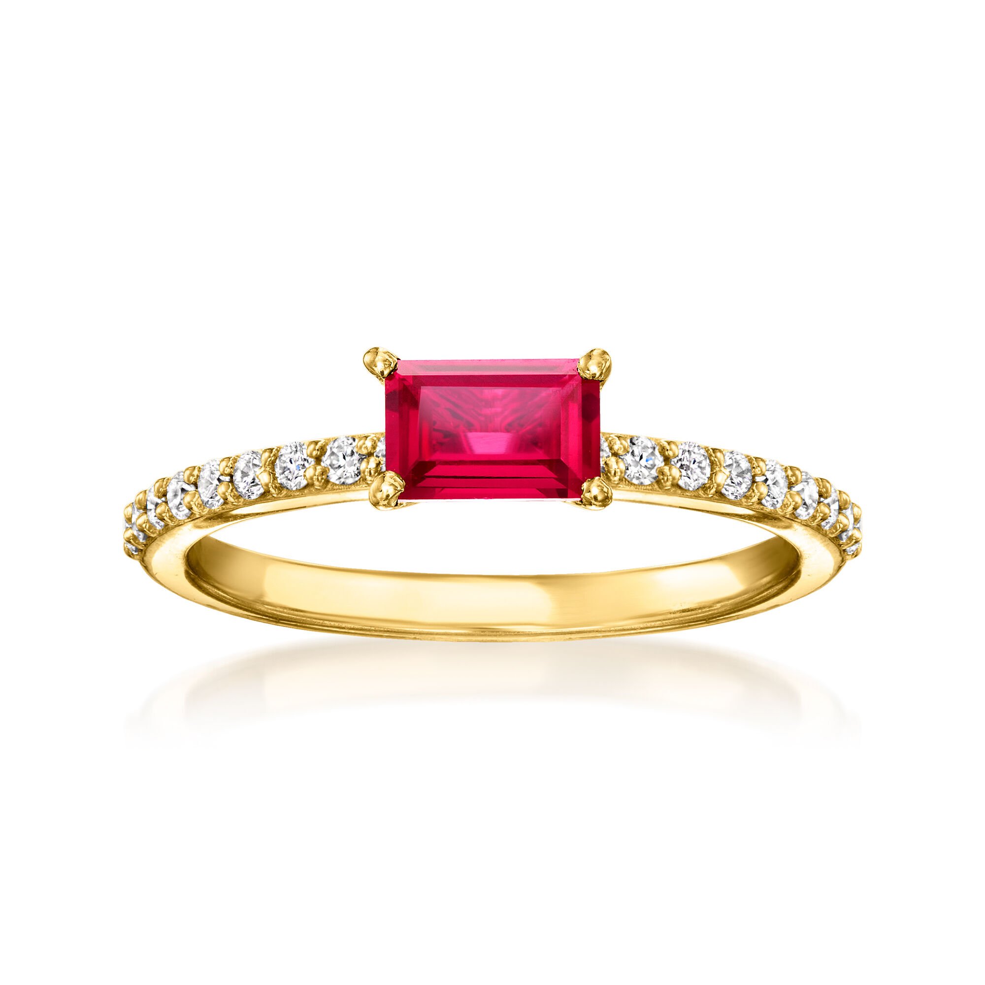 .60 Carat Lab-Grown Ruby Ring with .20 ct. t.w. Lab-Grown Diamonds in 18kt Gold Vermeil
