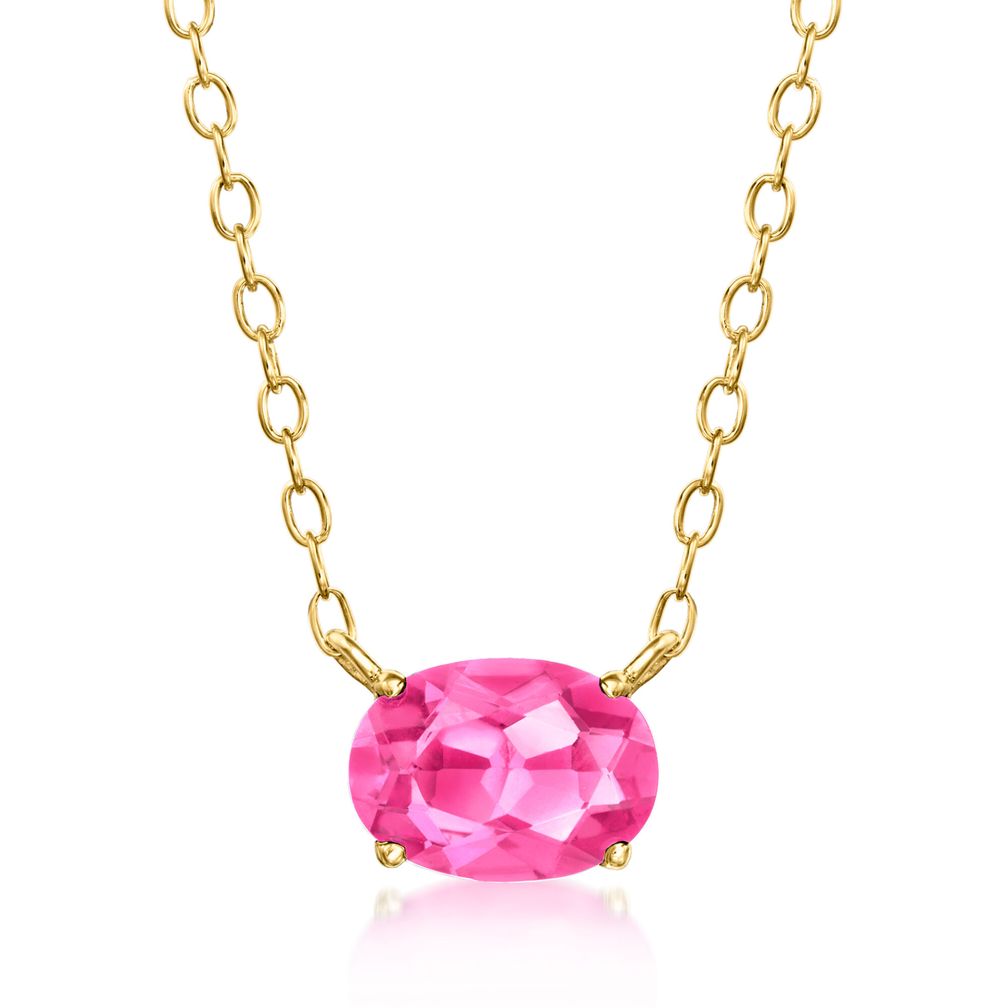 .60 Carat Oval Lab-Grown Pink Sapphire Necklace in 18kt Gold Vermeil. 16″