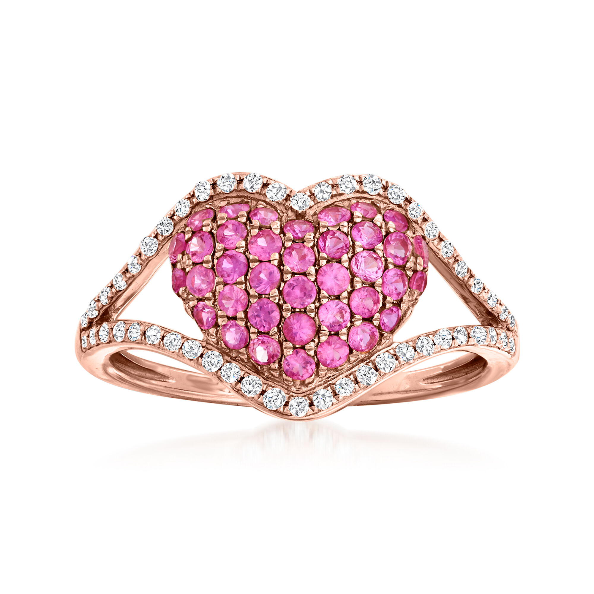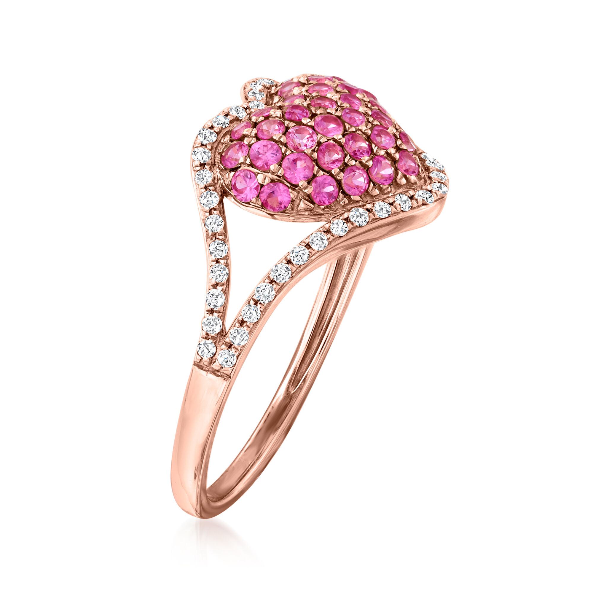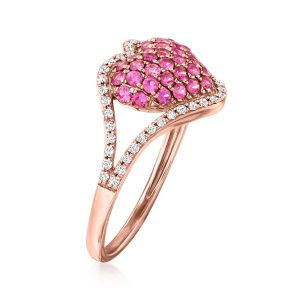 .60 ct. t.w. Pink Sapphire and .20 ct. t.w. Diamond Heart Ring in 14kt Rose Gold