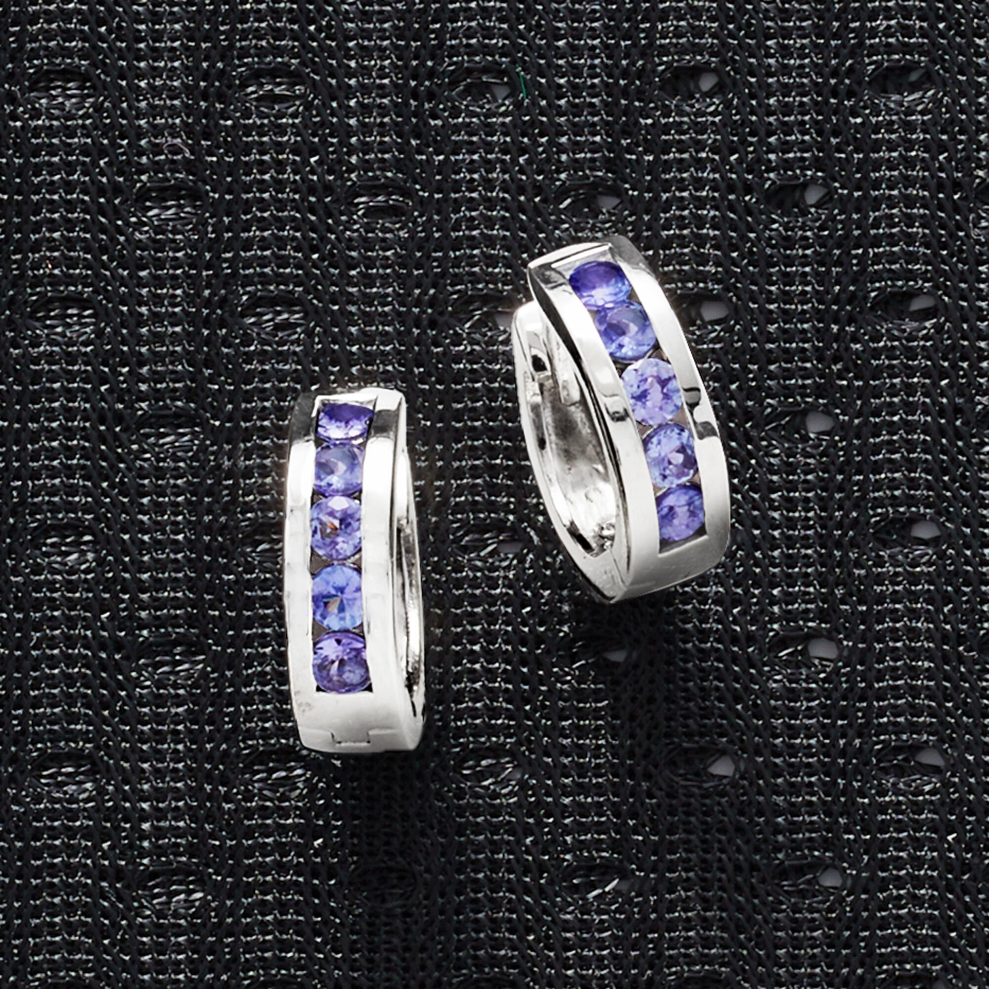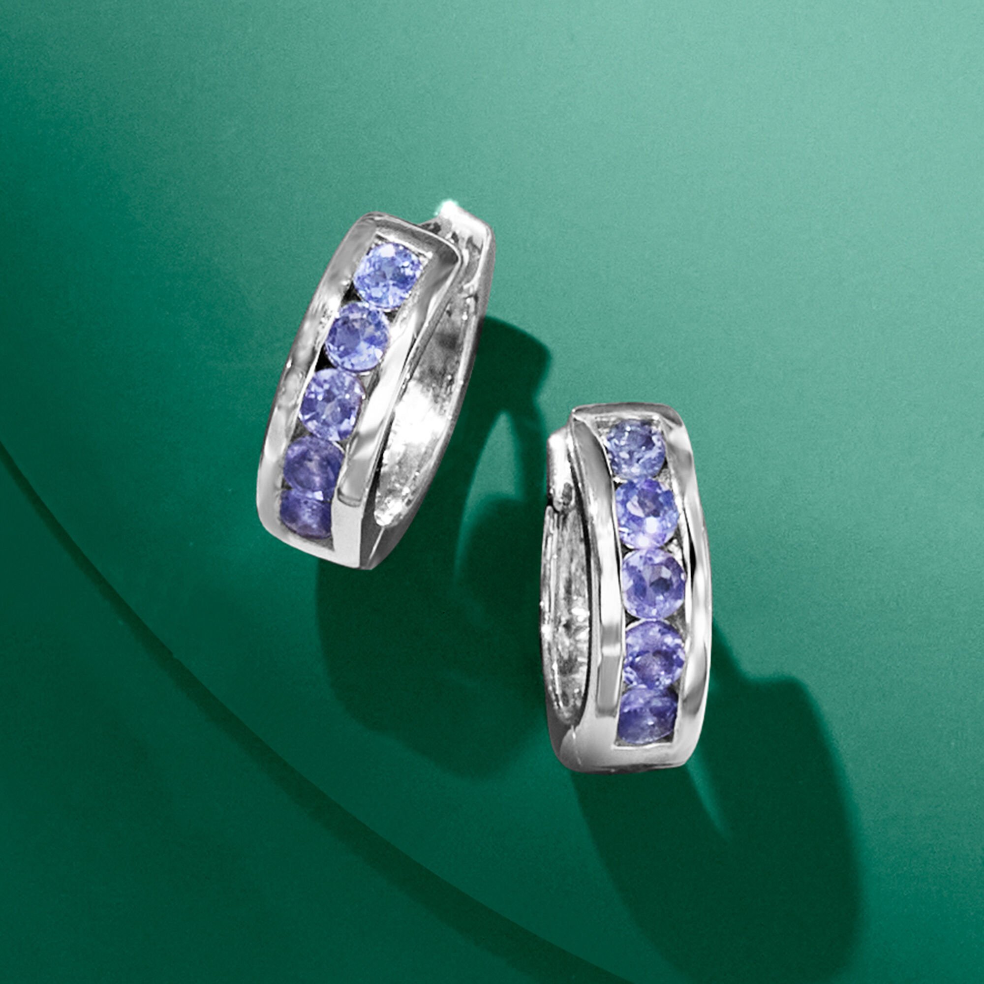 .60 ct. t.w. Tanzanite Huggie Hoop Earrings in Sterling Silver. 1/2″