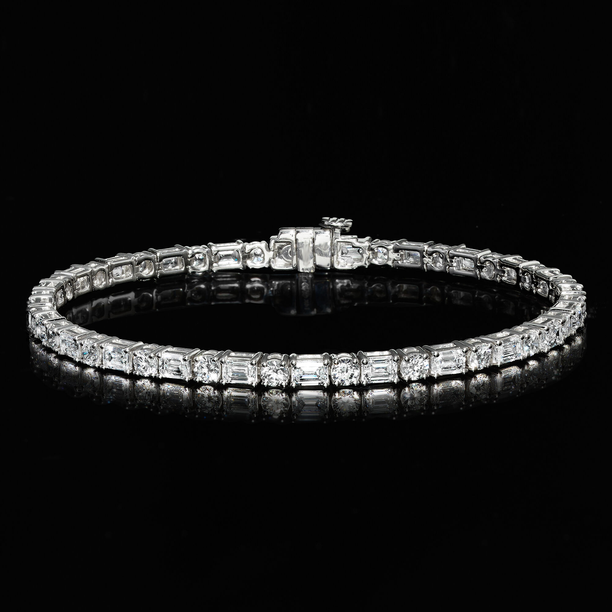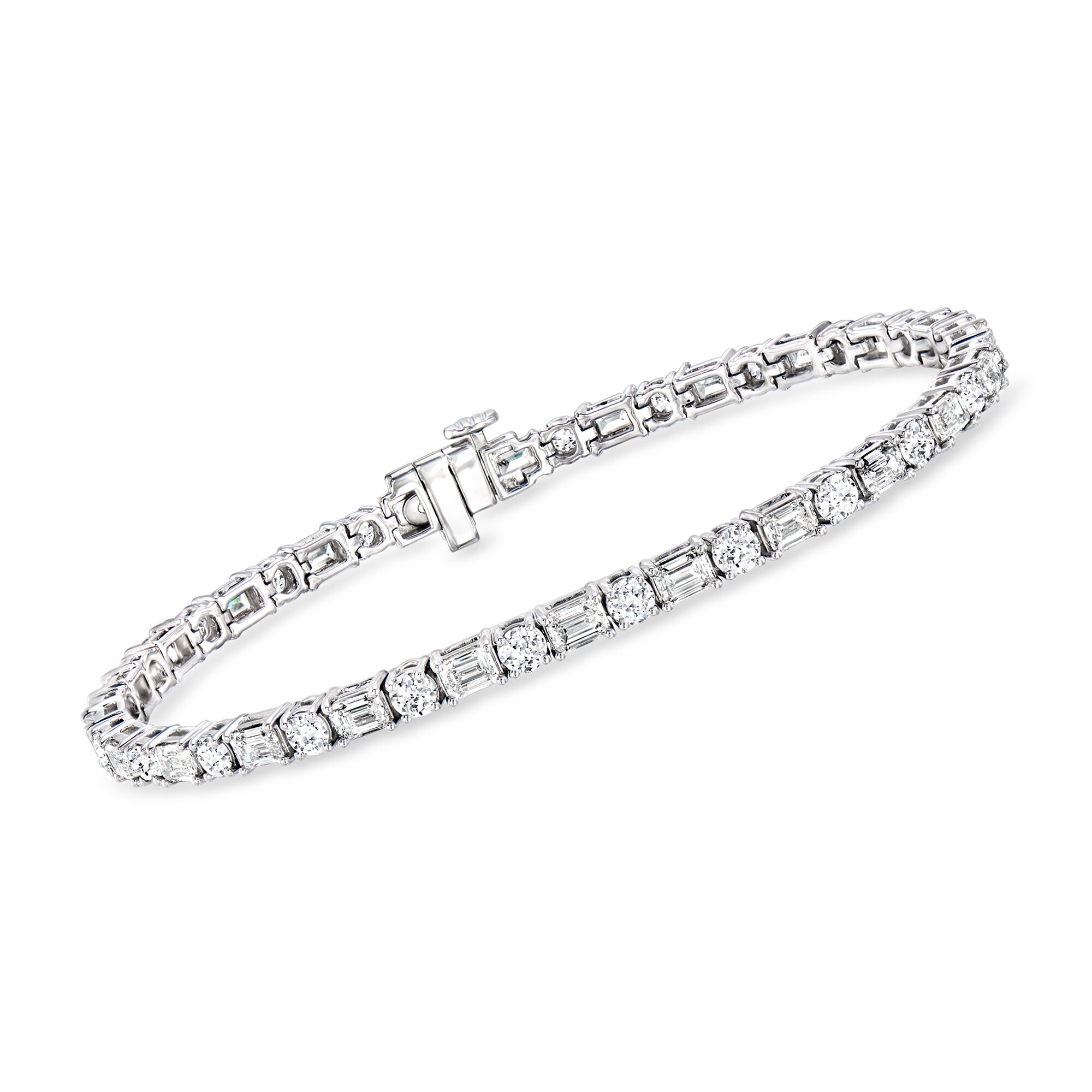 7.00 ct. t.w. Round and Emerald-Cut Lab-Grown Diamond Tennis Bracelet in 14kt White Gold