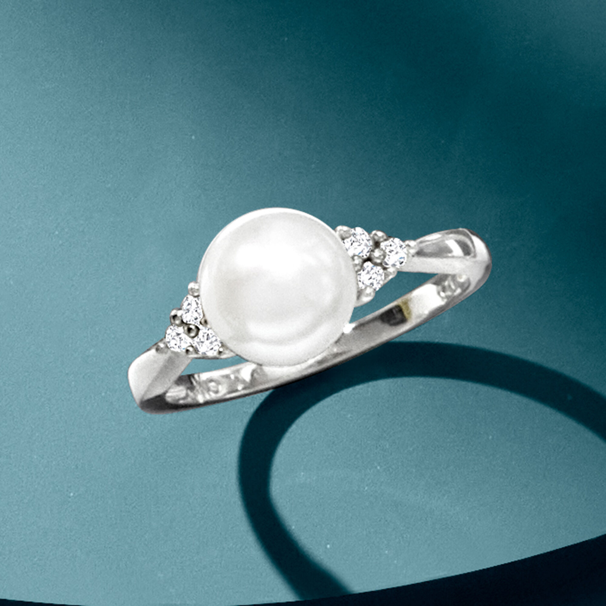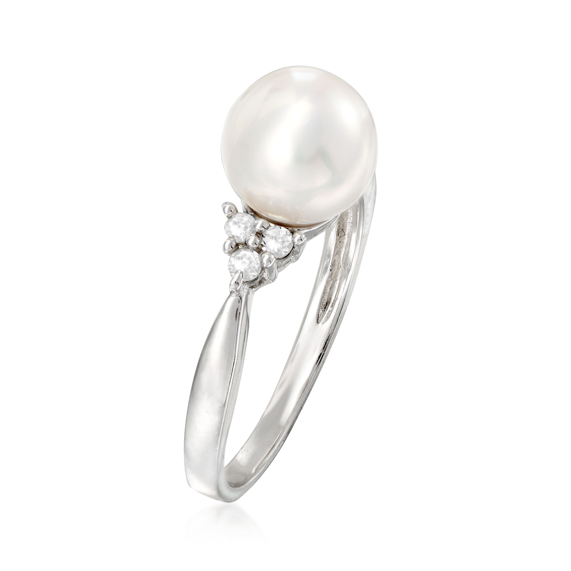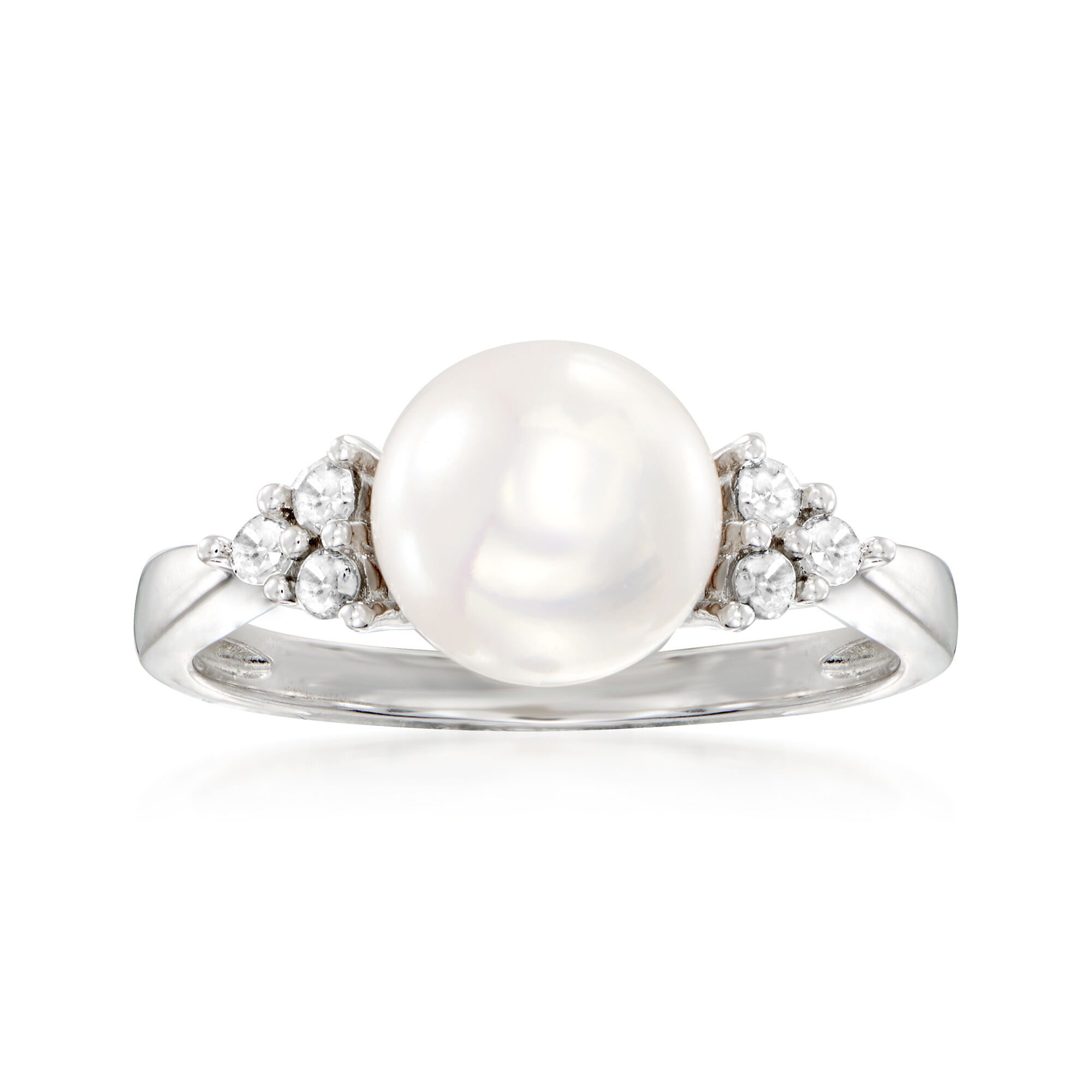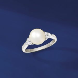 7.5-8.5mm Cultured Pearl and .13 ct. t.w. Diamond Ring in Sterling Silver