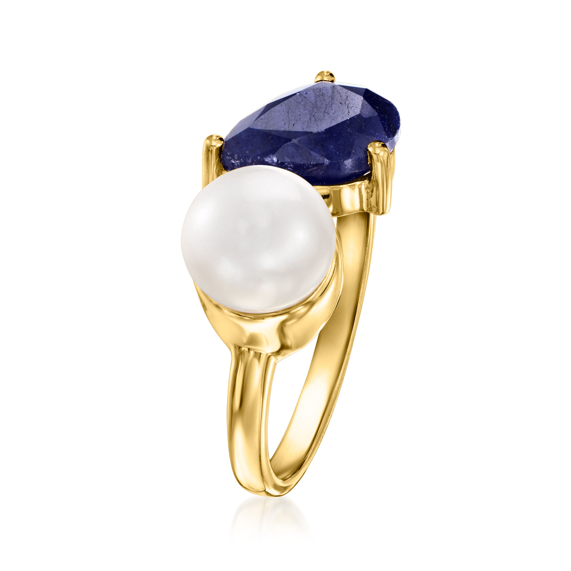 7.5-8mm Cultured Pearl and 2.80 Carat Sapphire Toi et Moi Ring in 18kt Gold Over Sterling