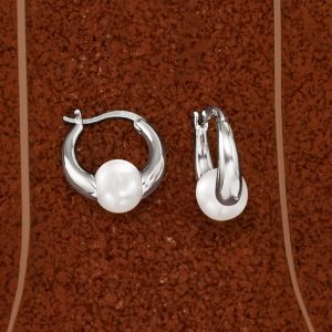 7.5-8mm Cultured Pearl Huggie Hoop Earrings in Sterling Silver. 5/8″