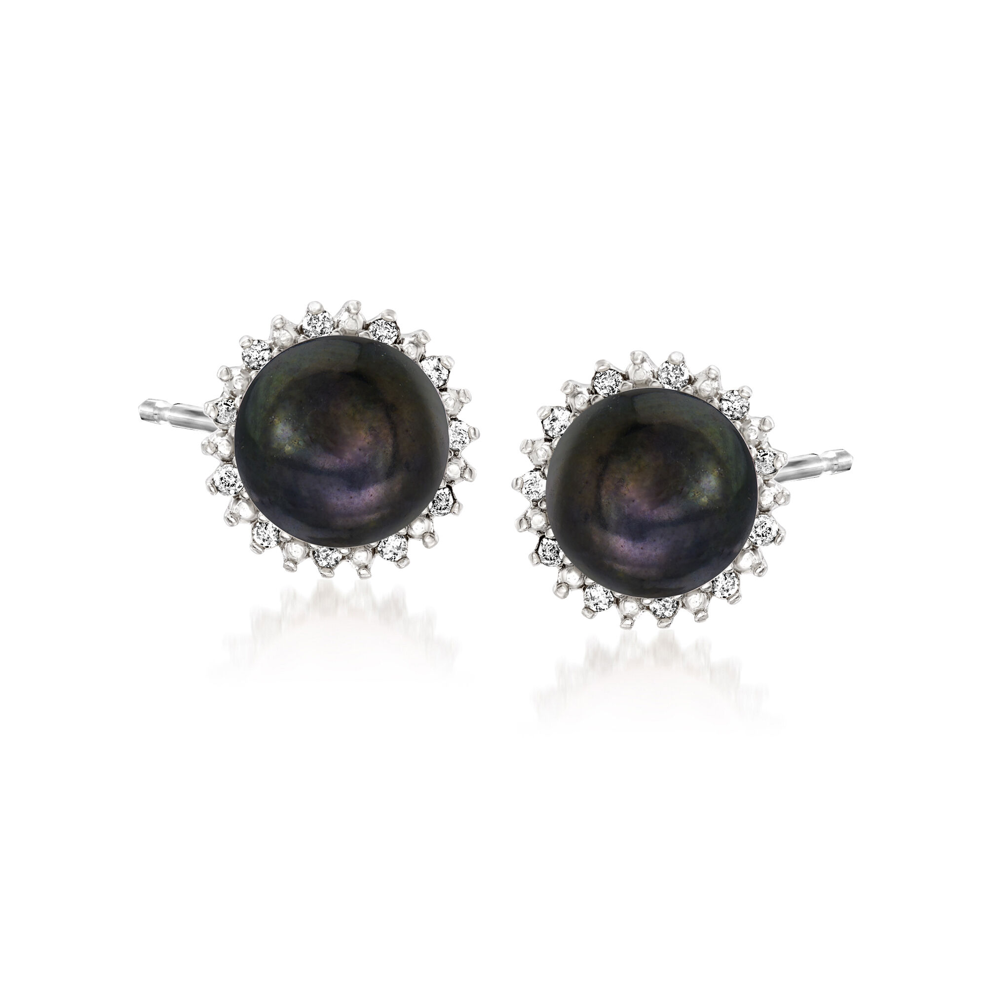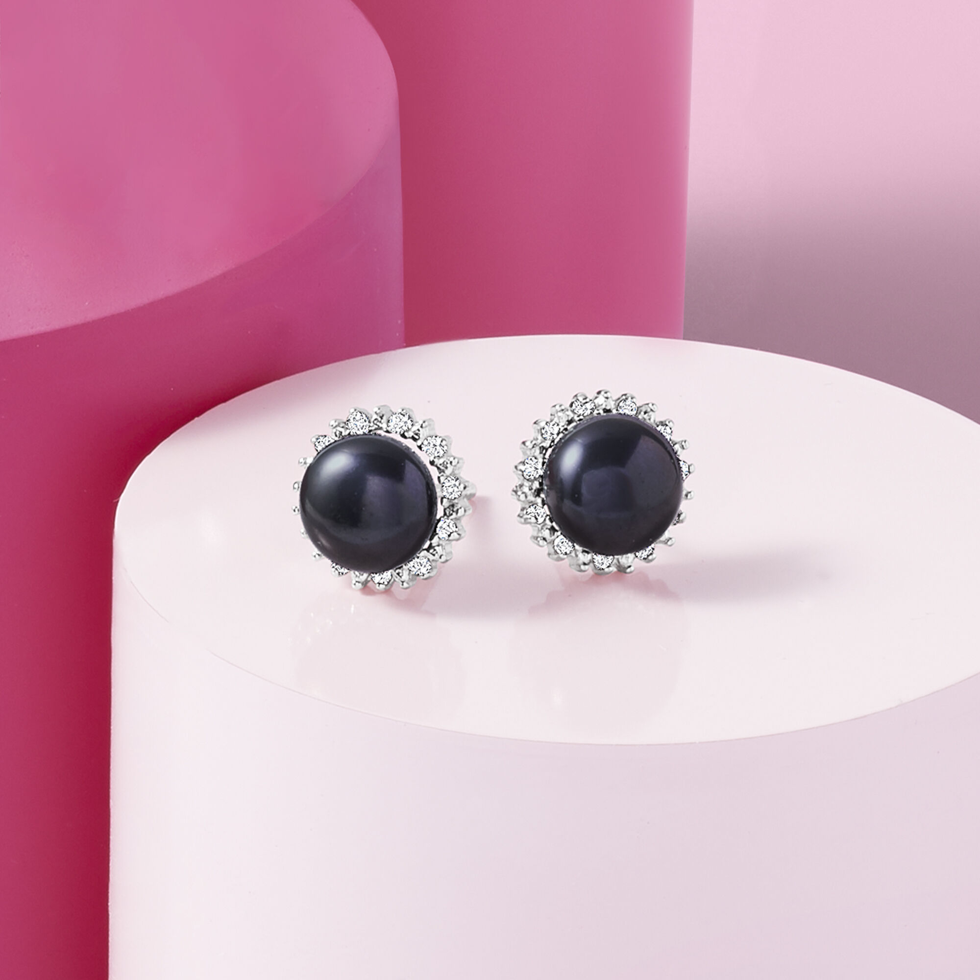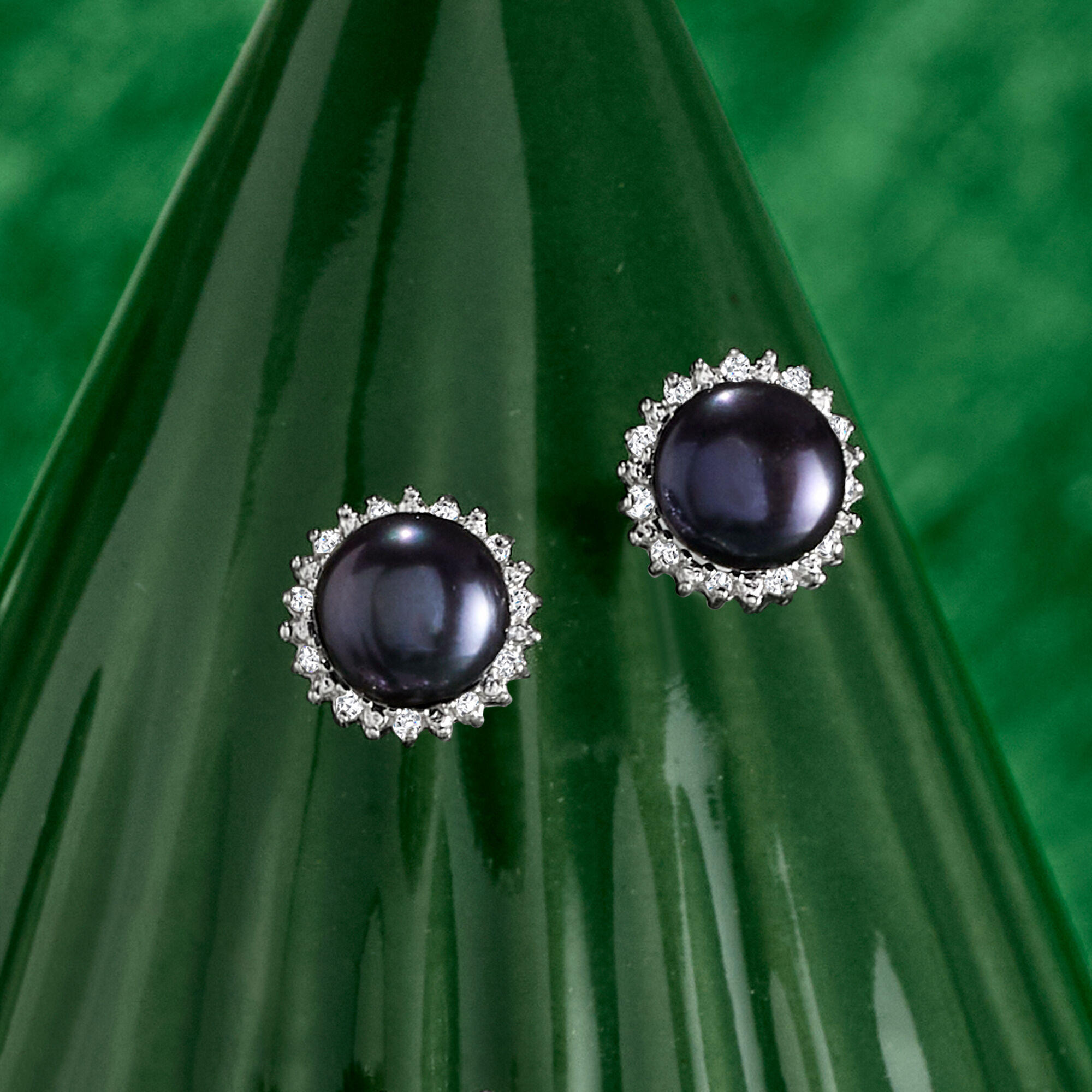 7-7.5mm Cultured Button Pearl and .13 ct. t.w. Diamond Stud Earrings in Sterling Silver
