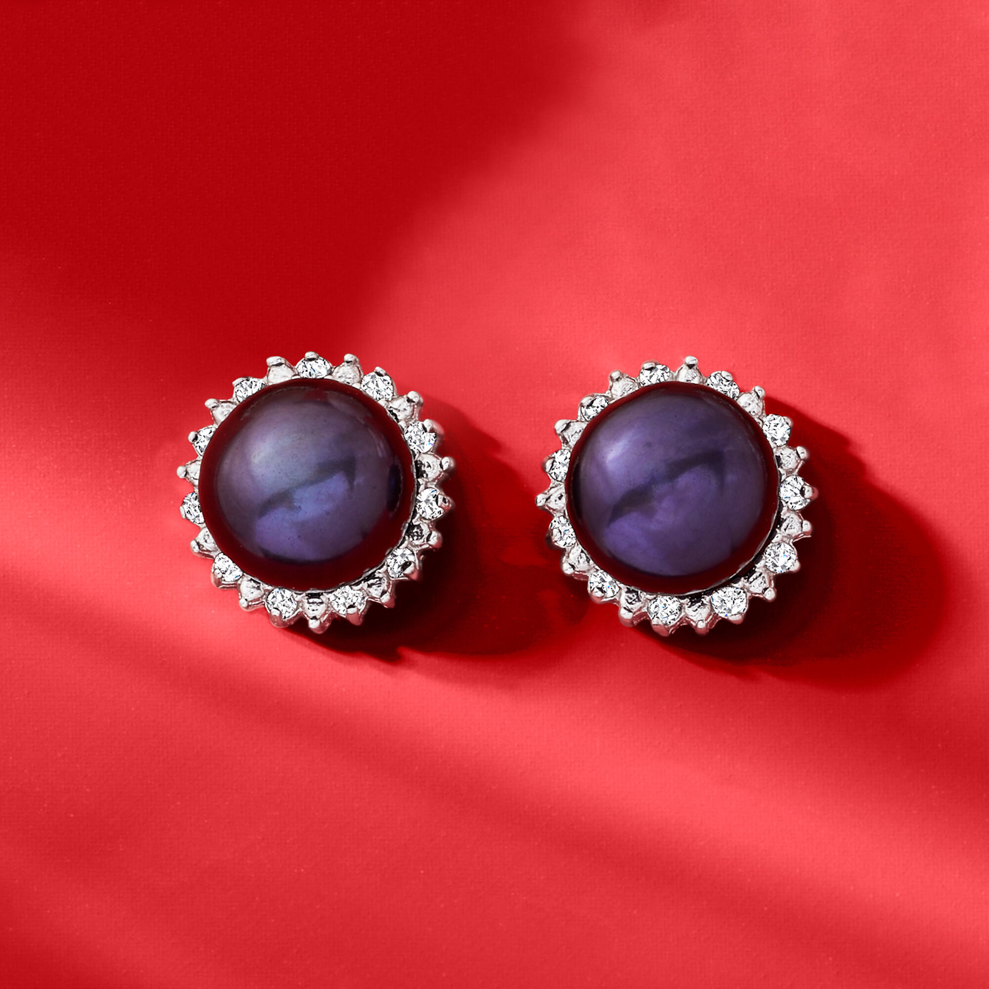 6-6.5mm Cultured Pearl and .60 ct. t.w. CZ Jewelry Set: Three Pairs of Earrings in Sterling Silver