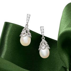 7-7.5mm Cultured Pearl and .15 ct. t.w. CZ Drop Earrings in Sterling Silver
