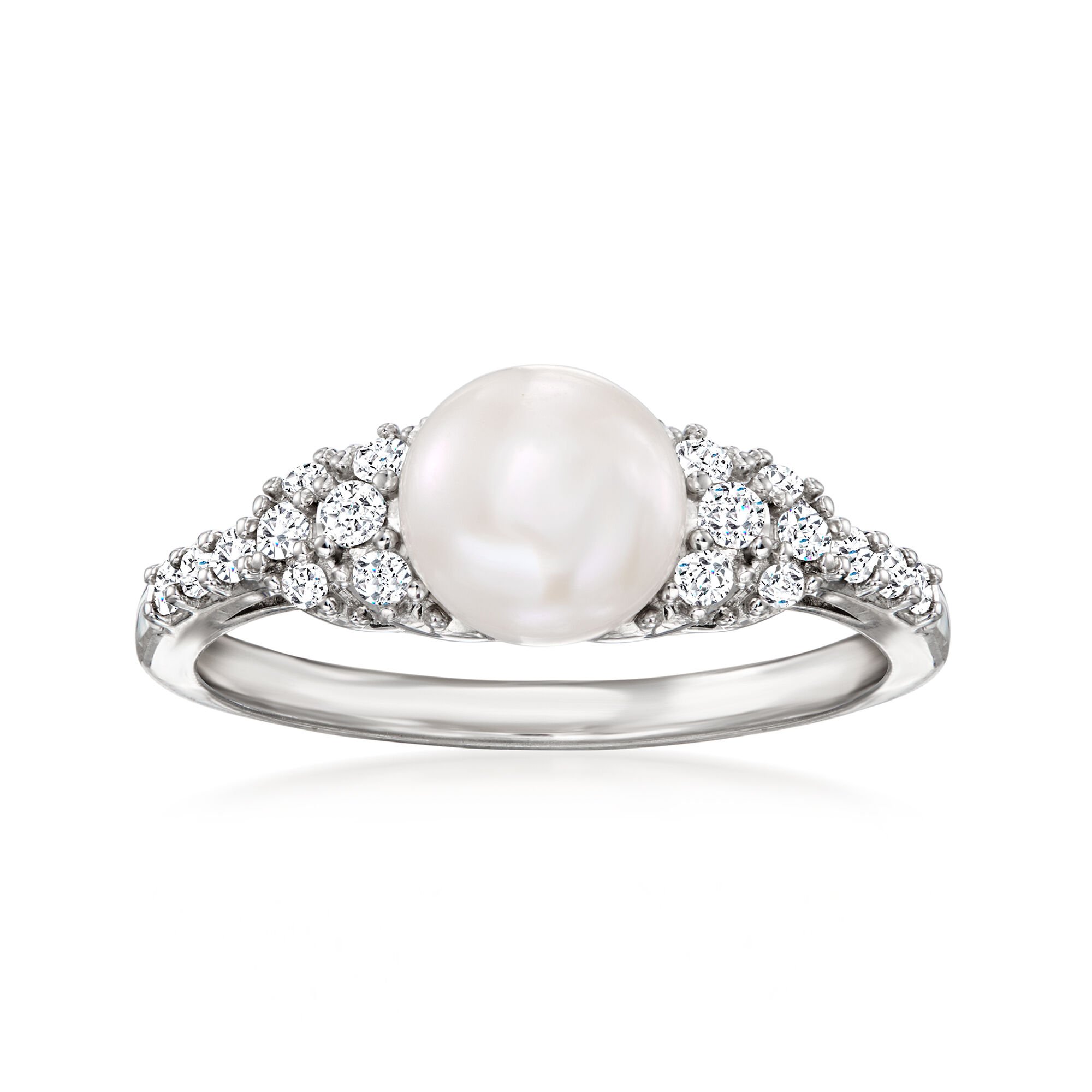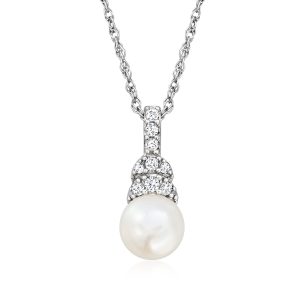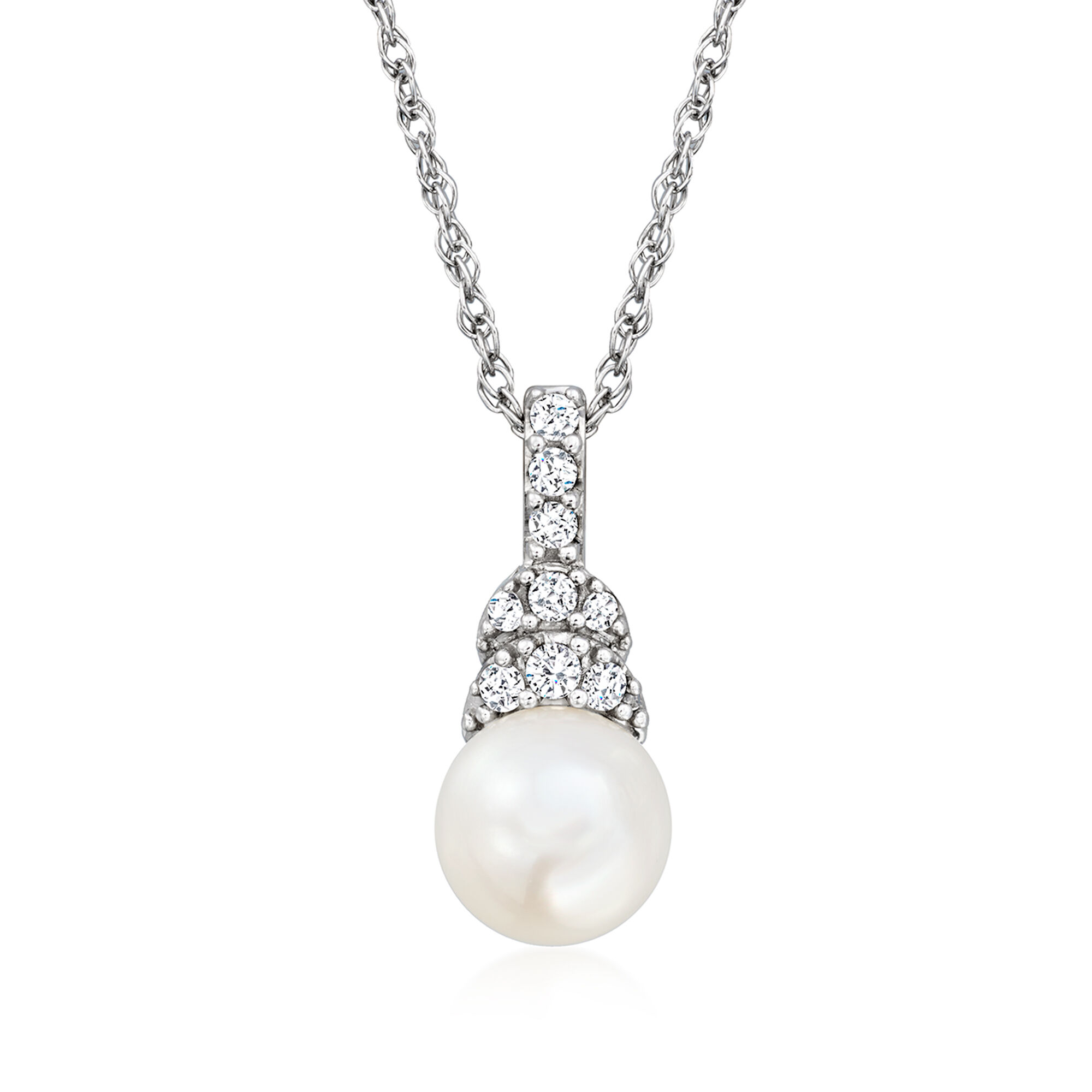 7-7.5mm Cultured Pearl and .50 ct. t.w. White Topaz Jewelry Set: Pendant Necklace and Ring in Sterling Silver