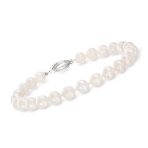 7-7.5mm Cultured Pearl Jewelry Set: Necklace, Bracelet and Stud Earrings in Sterling Silver