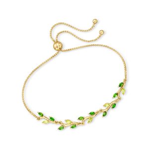 .70 ct. t.w. Chrome Diopside and .30 ct. t.w. Peridot Leaf Bolo Bracelet in 18kt Gold Vermeil