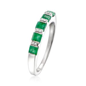 .70 ct. t.w. Emerald Ring with Diamonds in Sterling Silver