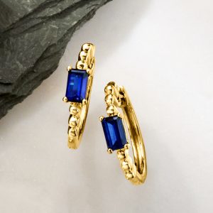 .70 ct. t.w. Lab-Grown Sapphire Hoop Earrings in 18kt Gold Vermeil. 1/2″