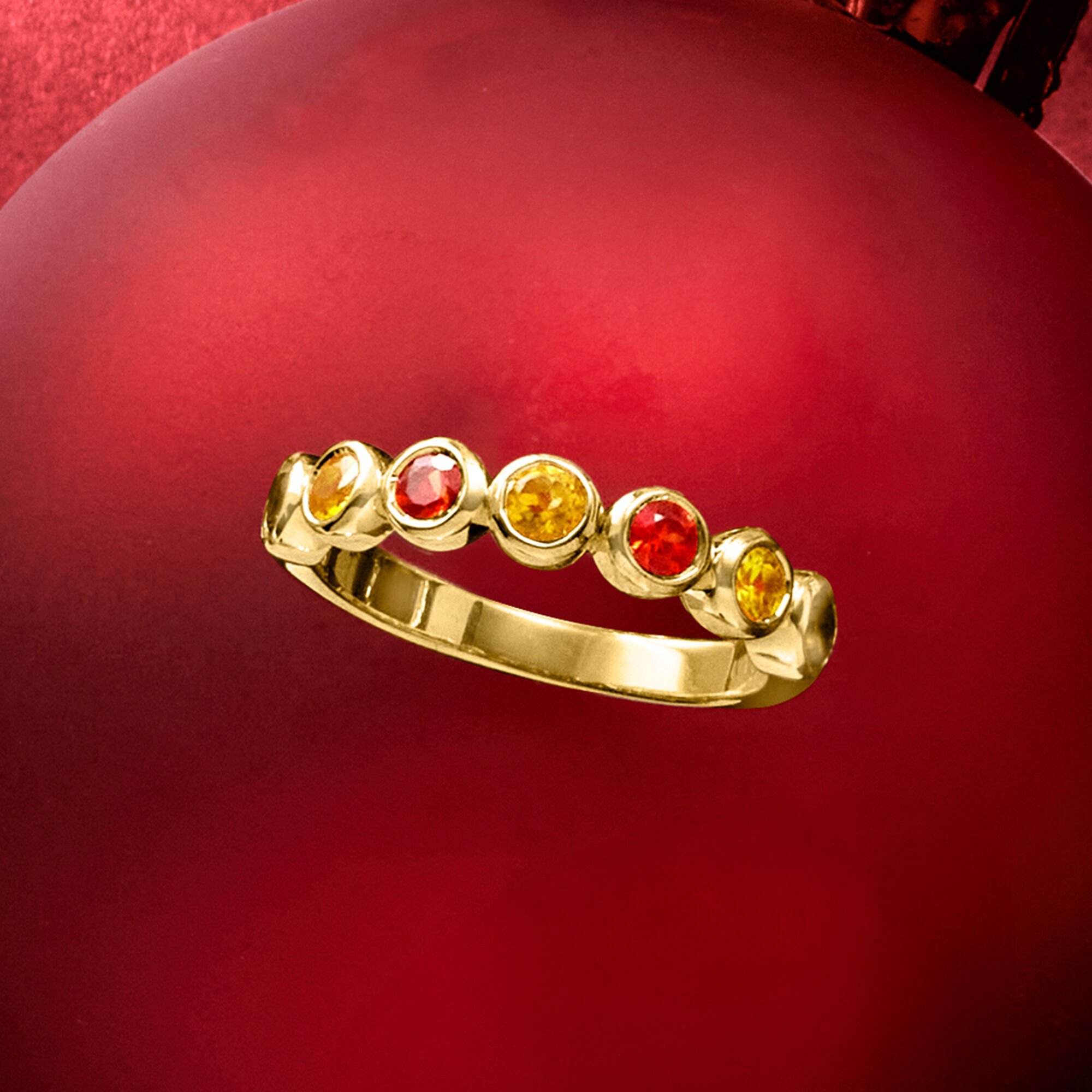 .70 ct. t.w. Orange and Yellow Sapphire Ring with .20 ct. t.w. Citrines in 18kt Gold Over Sterling