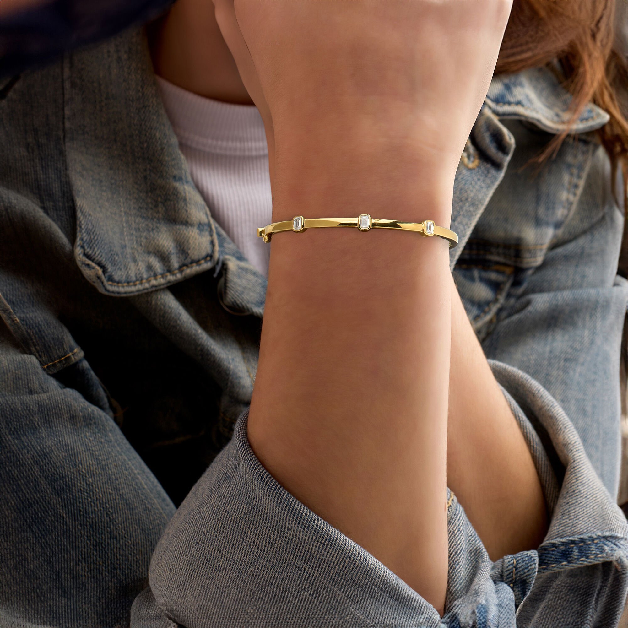 .75 ct. t.w. Emerald-Cut Lab-Grown Diamond Station Bangle Bracelet in 18kt Gold Over Sterling