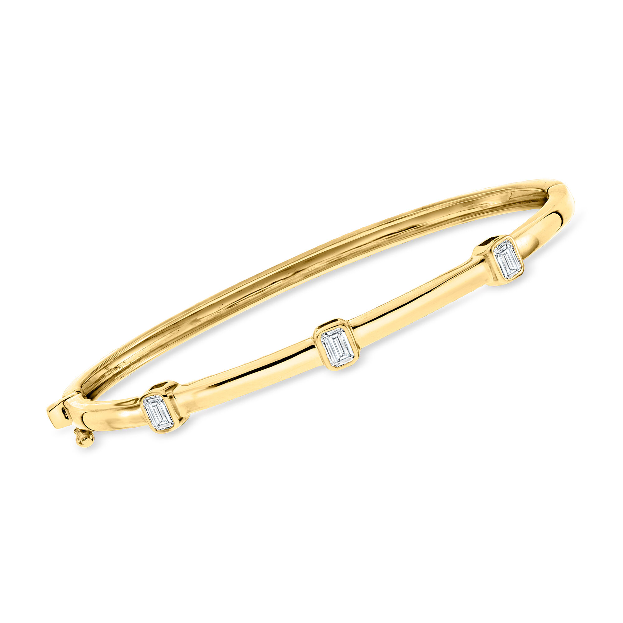 .75 ct. t.w. Emerald-Cut Lab-Grown Diamond Station Bangle Bracelet in 18kt Gold Over Sterling