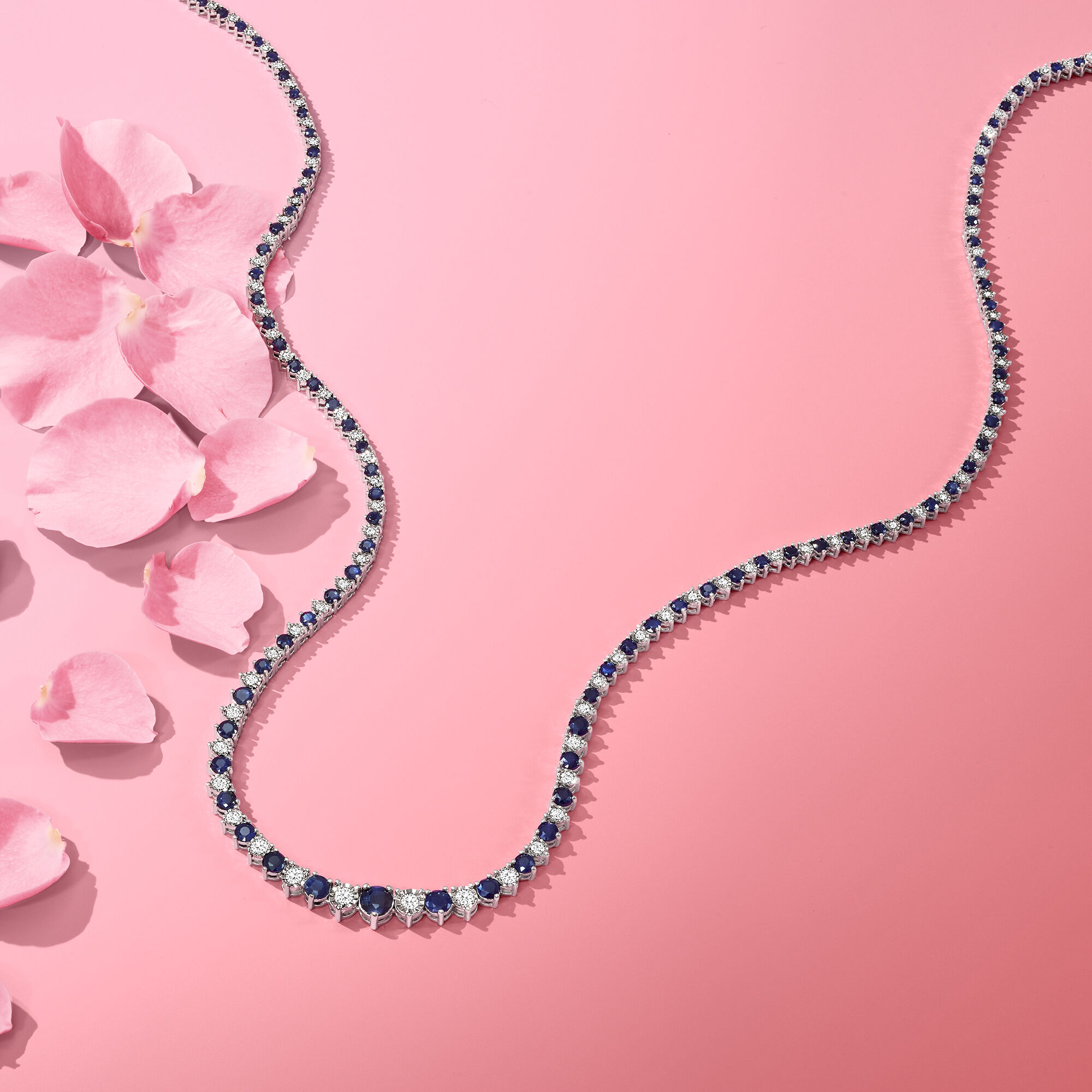8.00 ct. t.w. Sapphire and 1.50 ct. t.w. Diamond Tennis Necklace in Sterling Silver