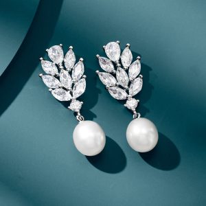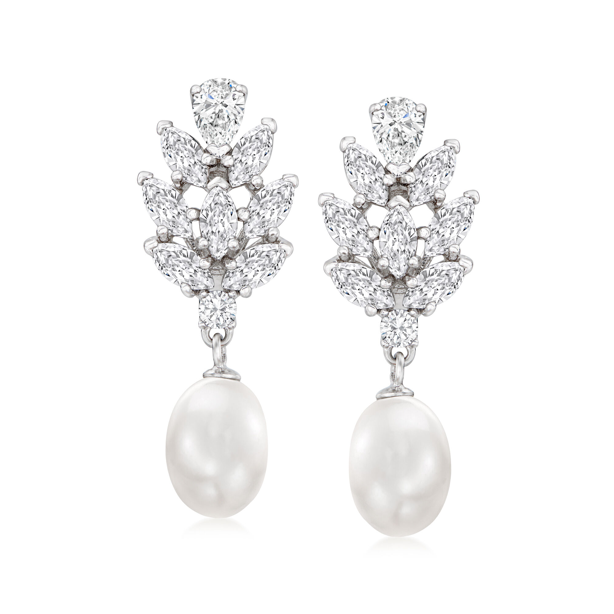 8-8.5mm Cultured Pearl and 3.30 ct. t.w. CZ Drop Earrings in Sterling Silver
