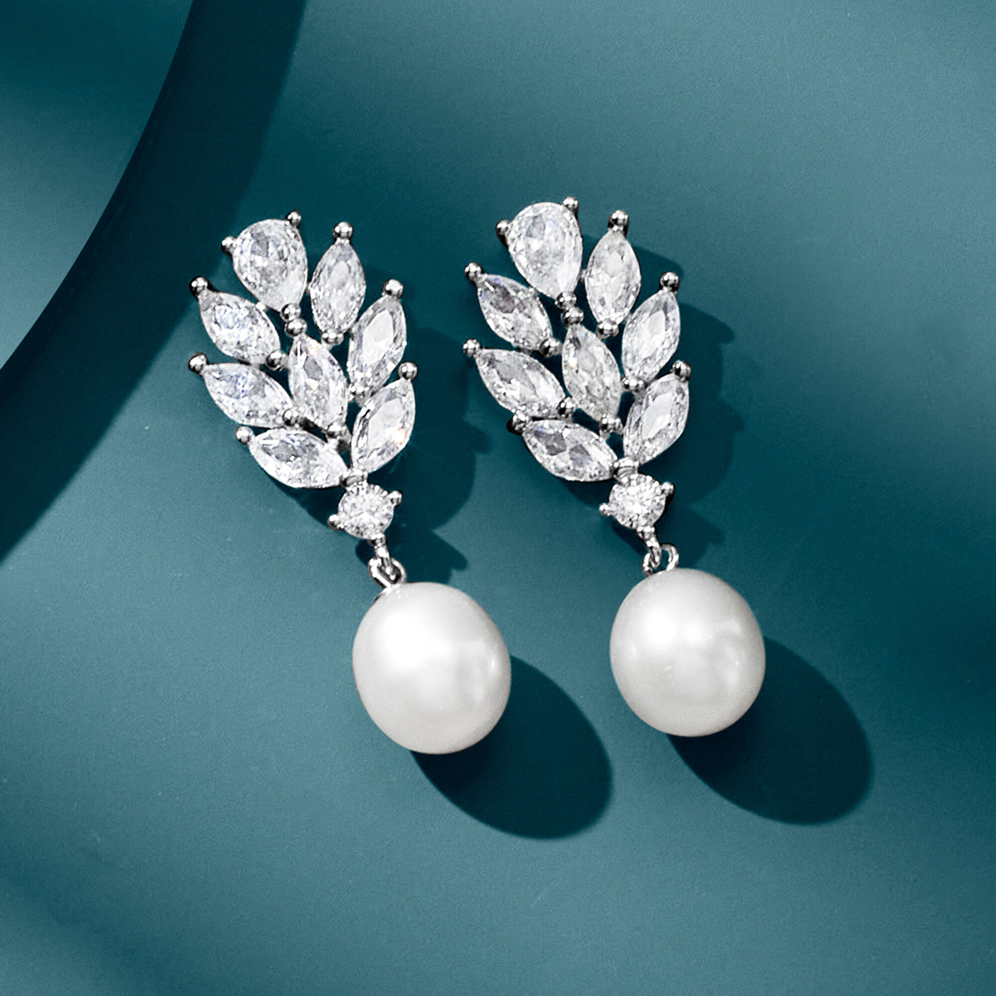 Italian 10.5-11mm Cultured Pearl and 1.50 ct. t.w. CZ Drop Earrings in Sterling Silver