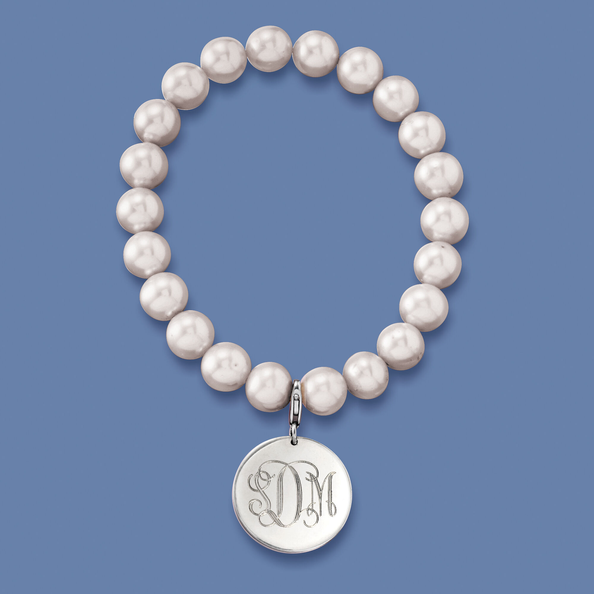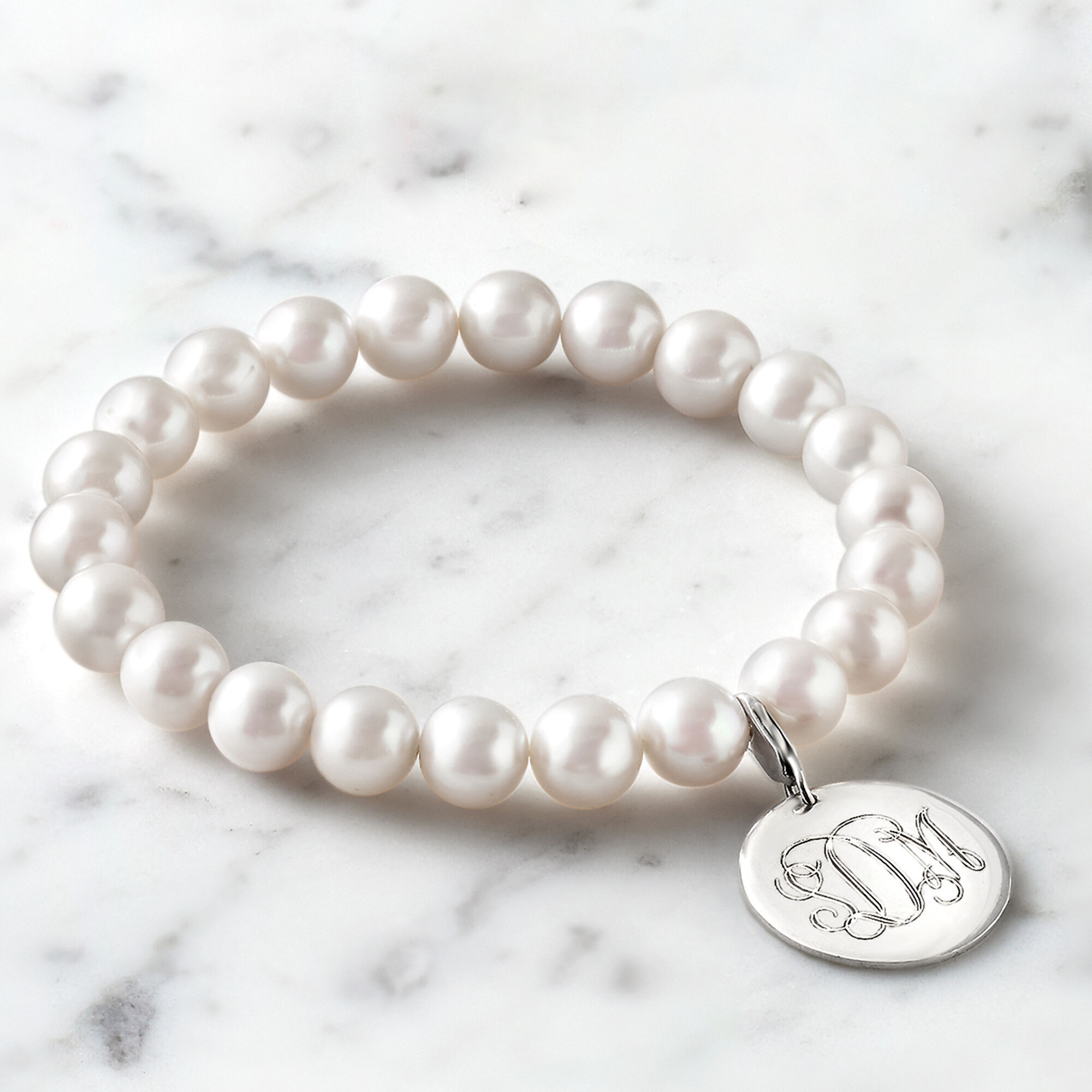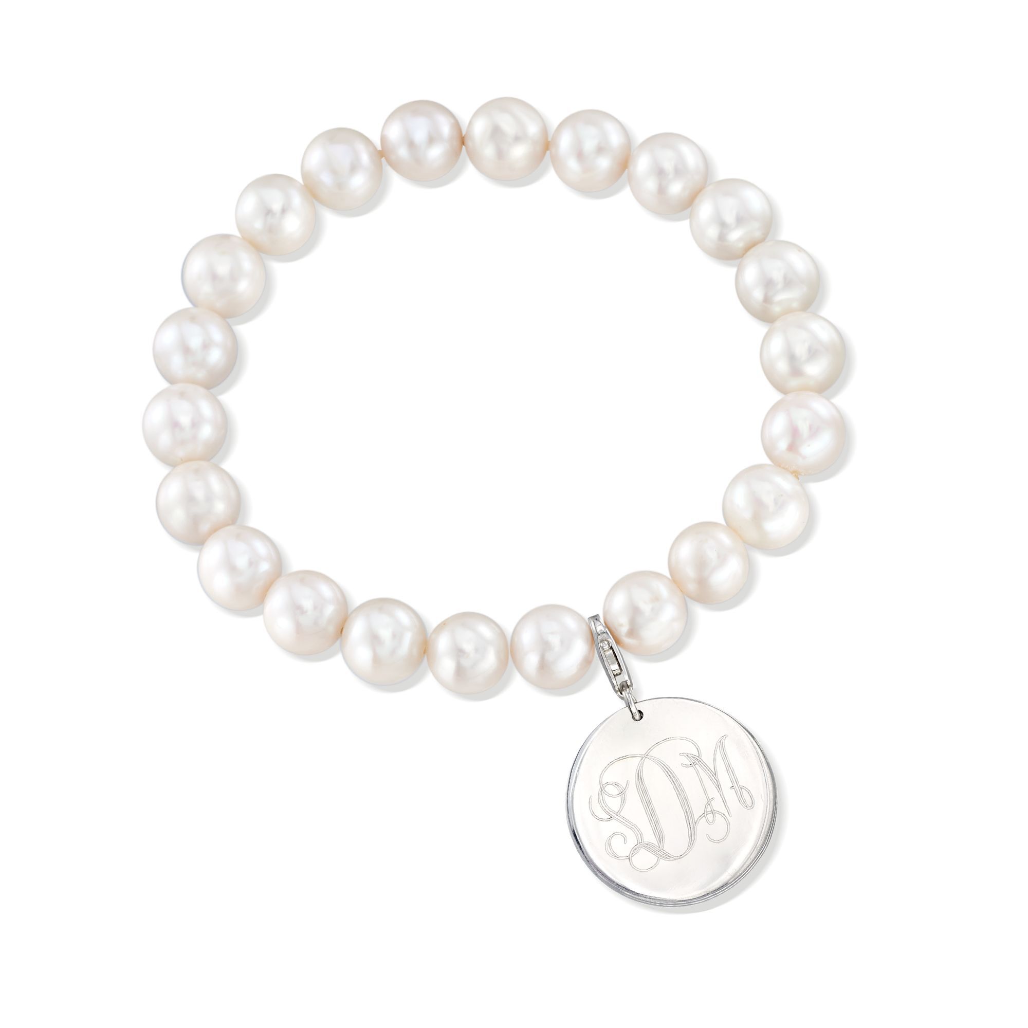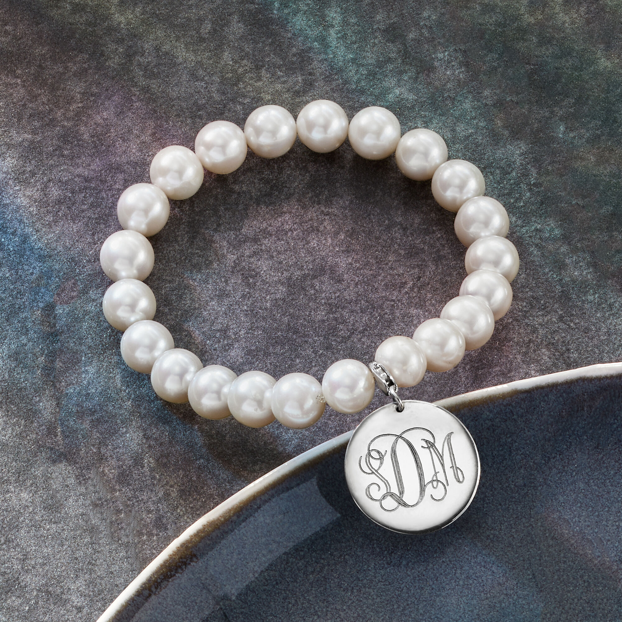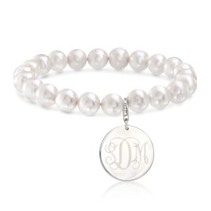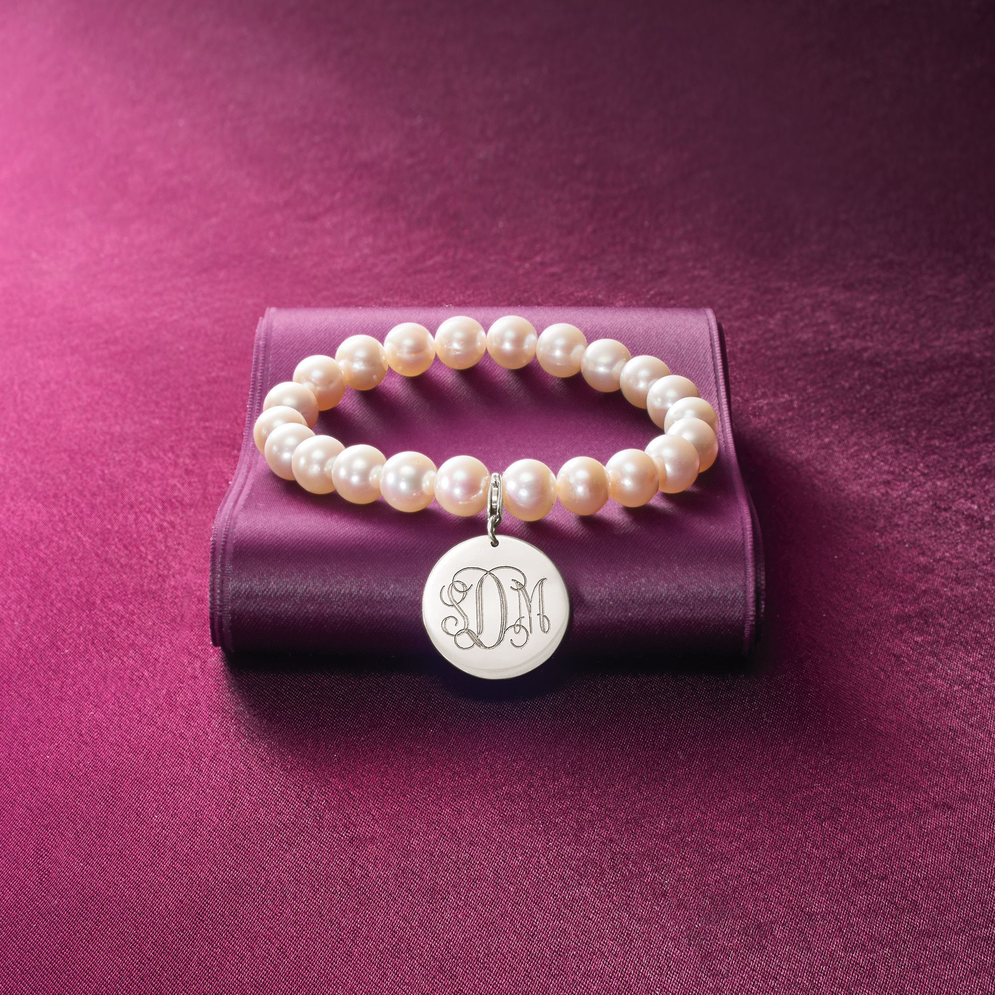 8-8.5mm Cultured Pearl Bracelet with Sterling Silver Personalized Disc Charm