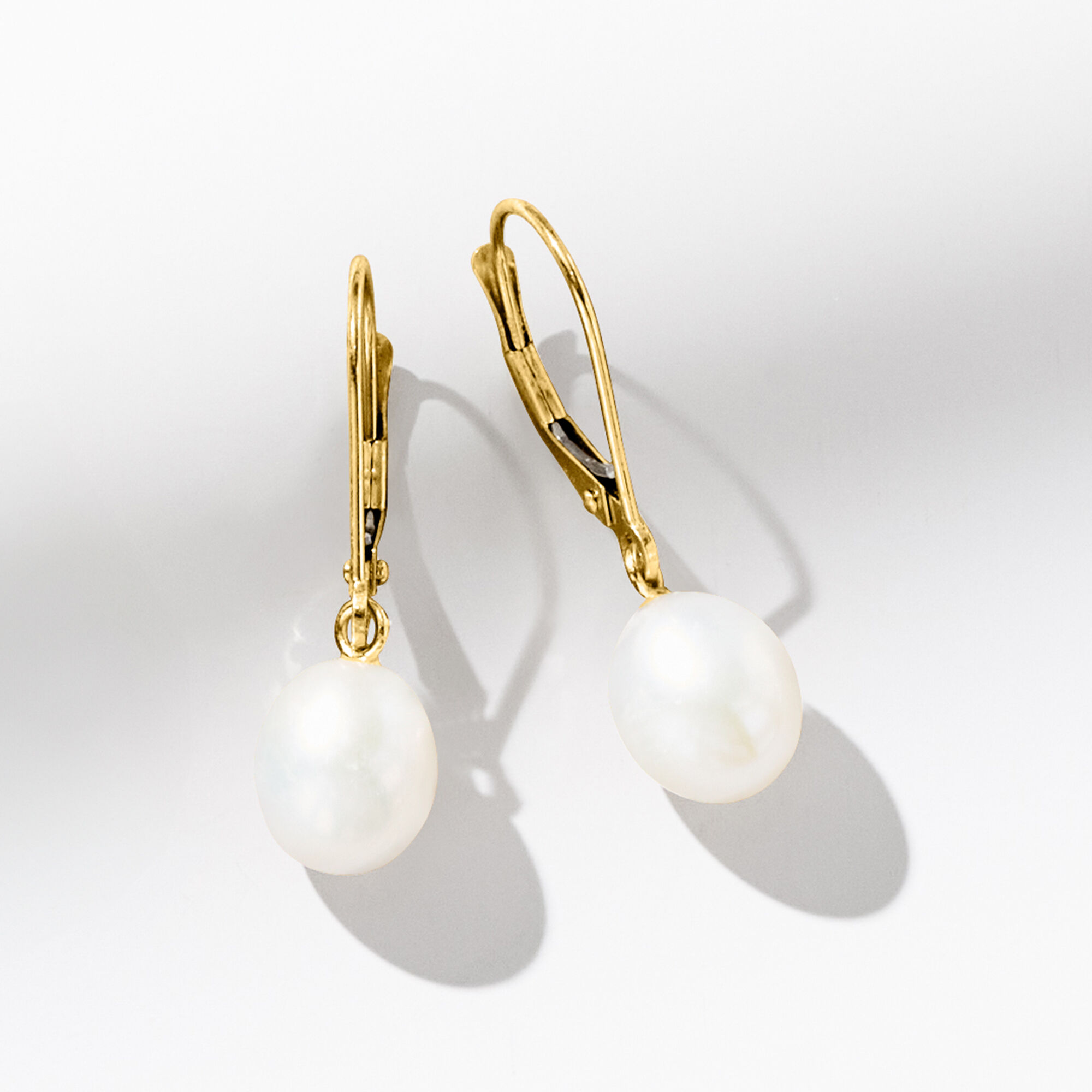8-8.5mm Cultured Pearl Oval Drop Earrings in 14kt Yellow Gold