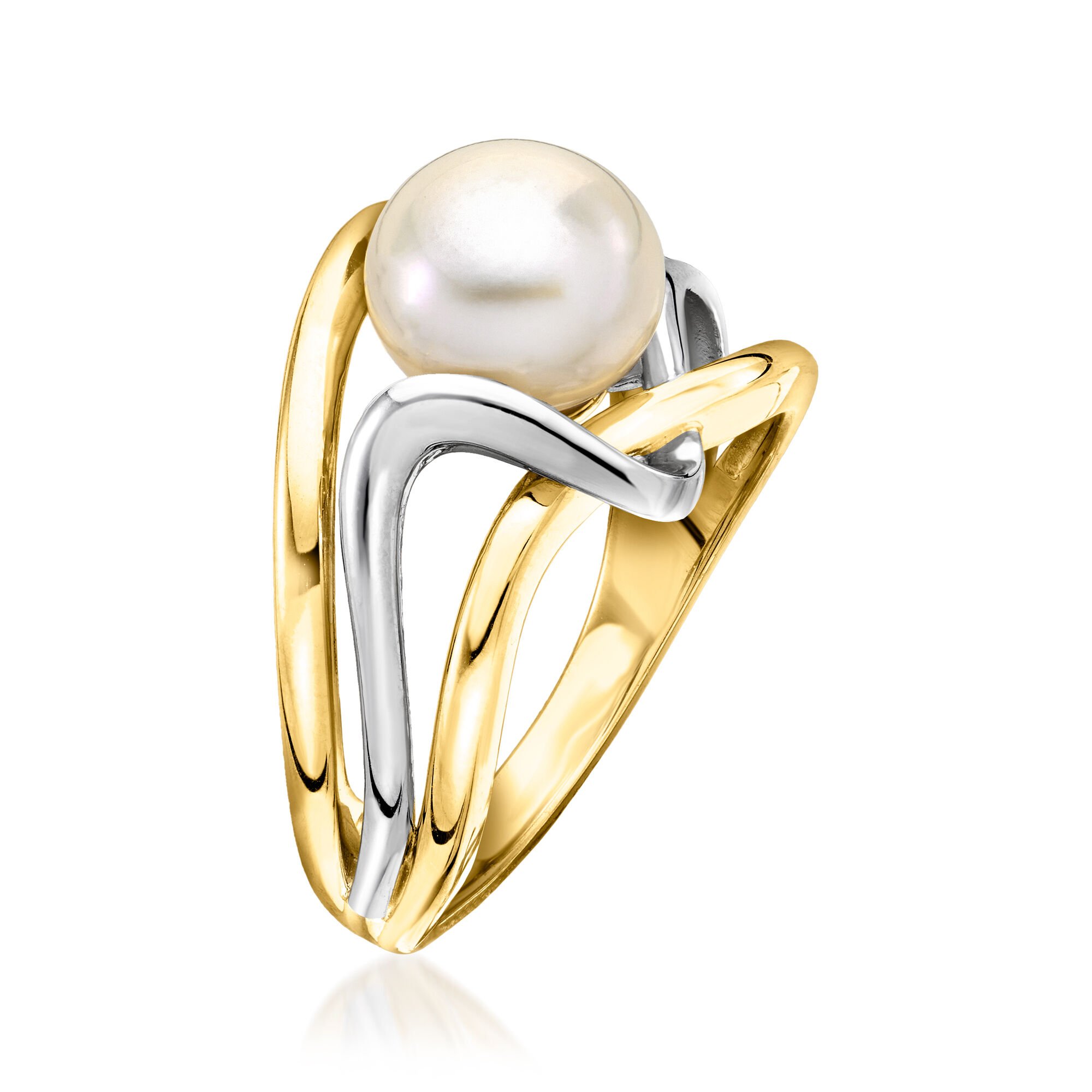 8-8.5mm Cultured Pearl Wavy Ring in 18kt Gold Over Sterling and Sterling Silver
