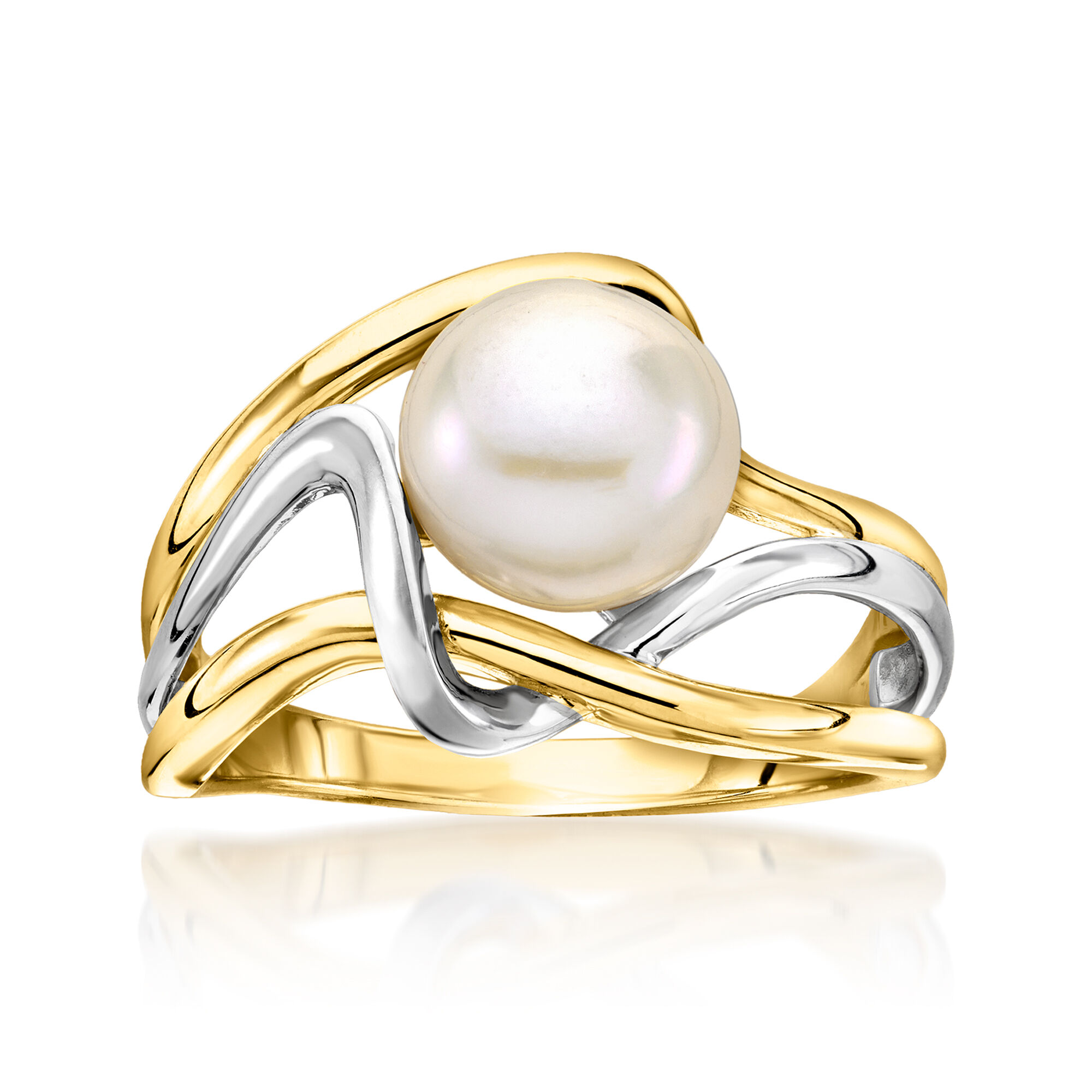 8-8.5mm Cultured Pearl Wavy Ring in 18kt Gold Over Sterling and Sterling Silver