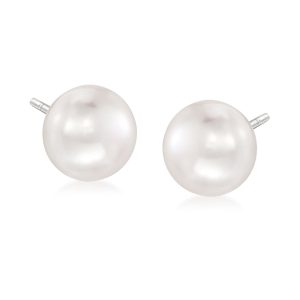 8-9mm Cultured Button Pearl Stud Earrings in 14kt Yellow Gold