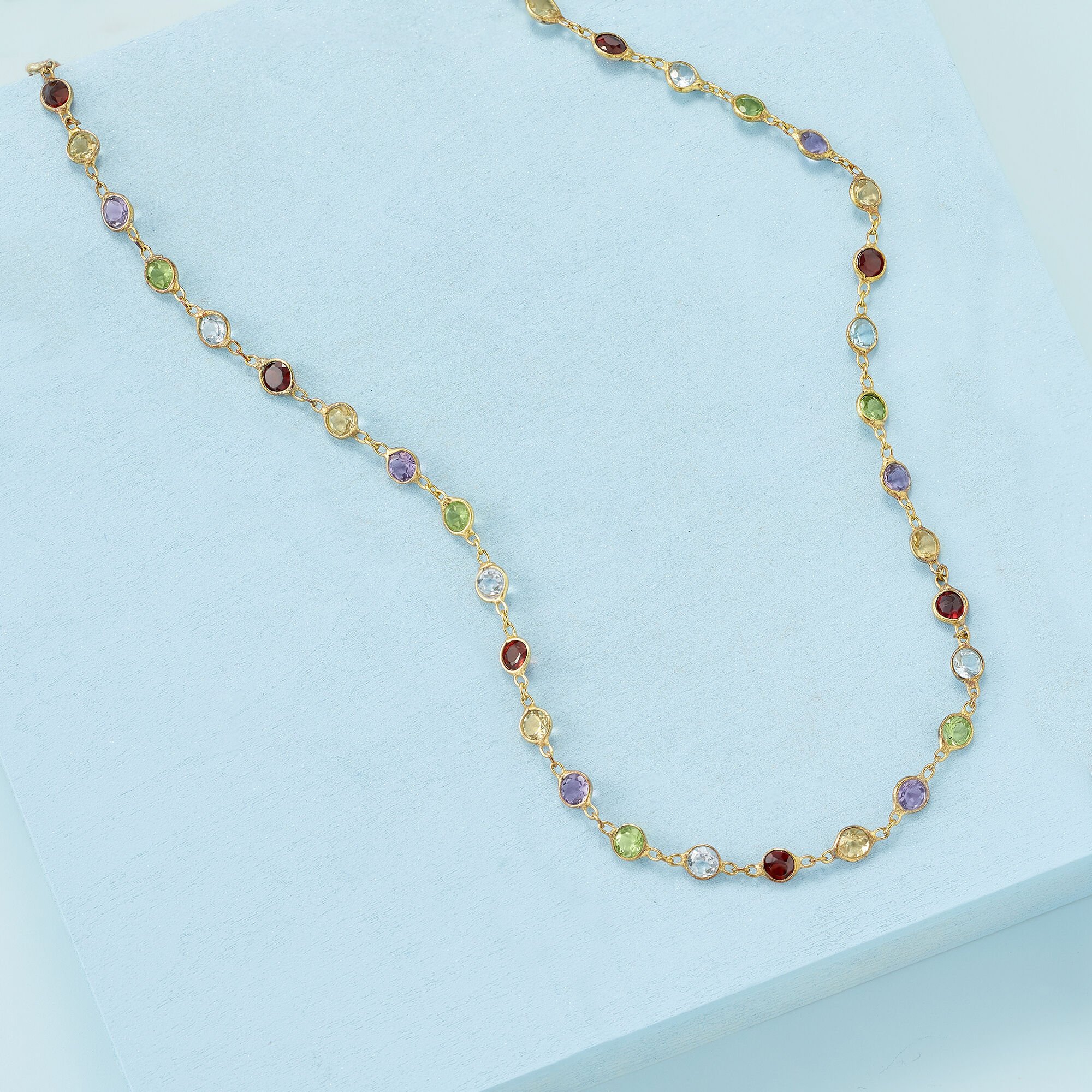 8.85 ct. t.w. Bezel-Set Multi-Gemstone Necklace in 18kt Gold Over Sterling