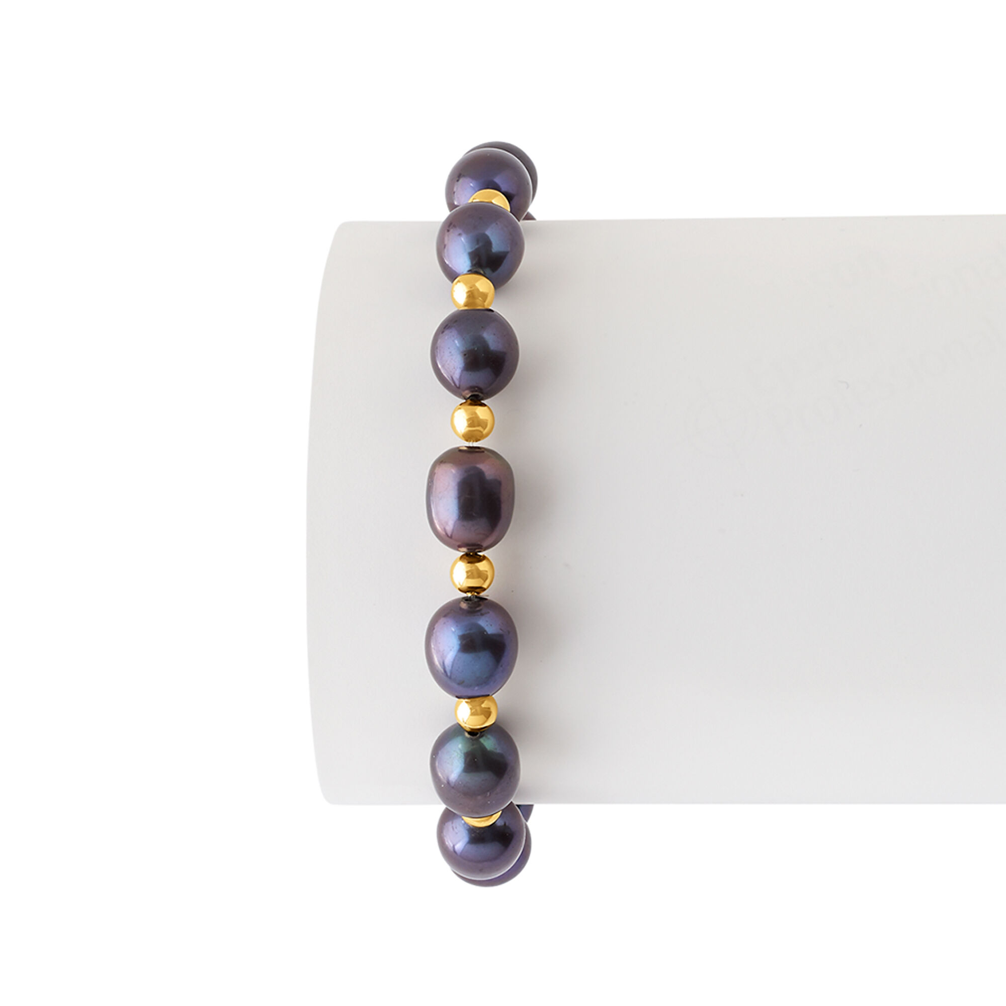 8-9mm Black Cultured Pearl and 14kt Yellow Gold Bead Stretch Bracelet