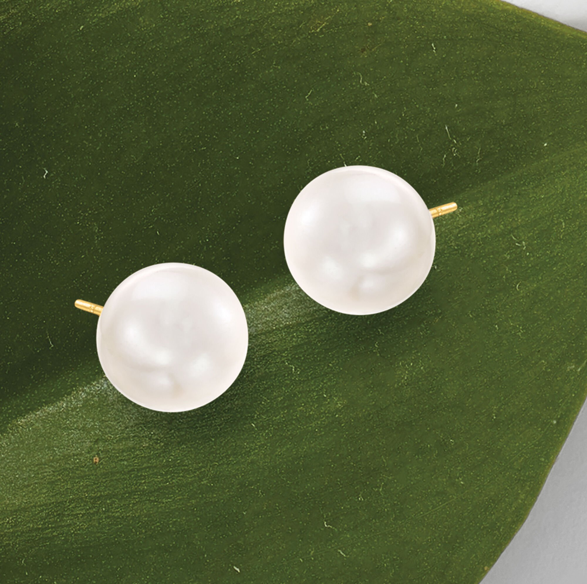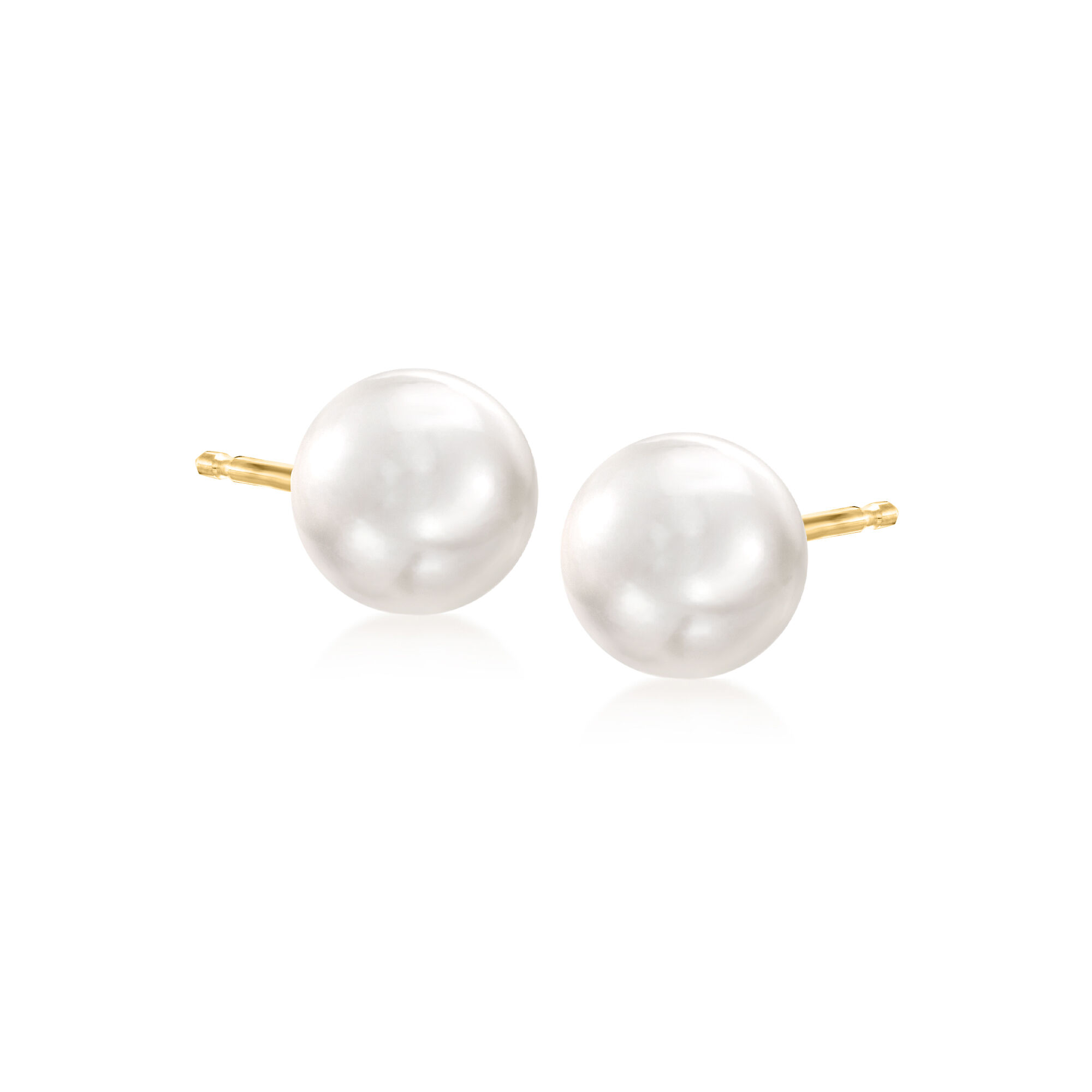 8-9mm Cultured Button Pearl Stud Earrings in 14kt Yellow Gold