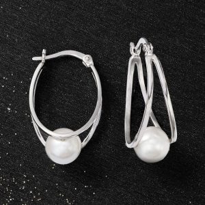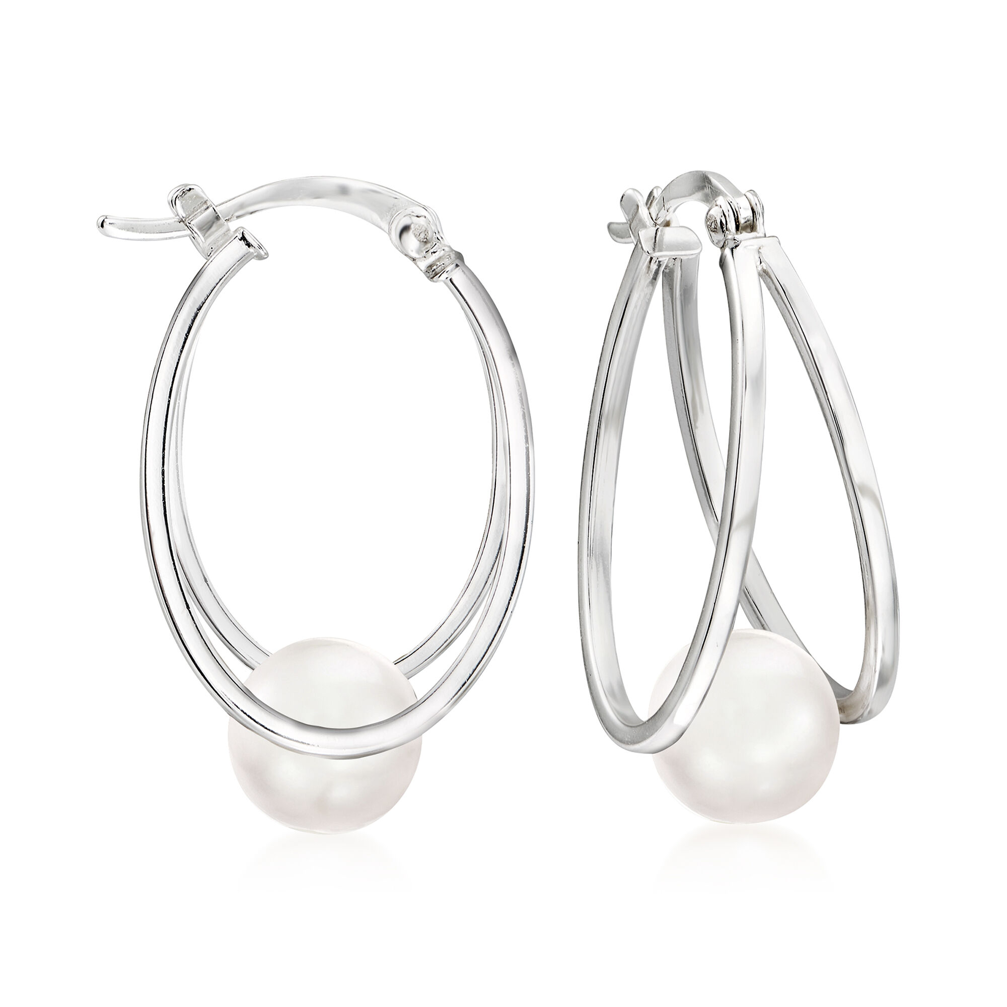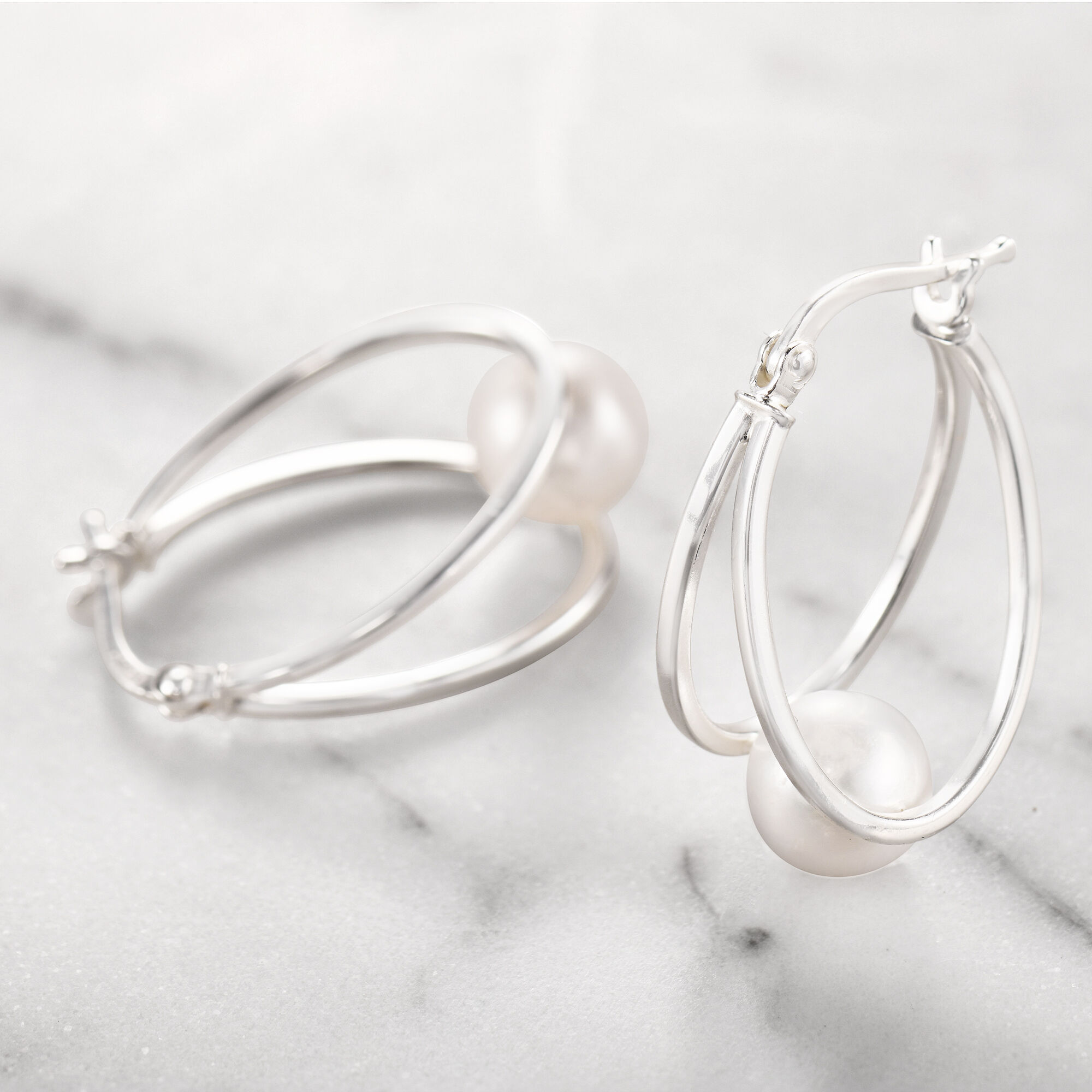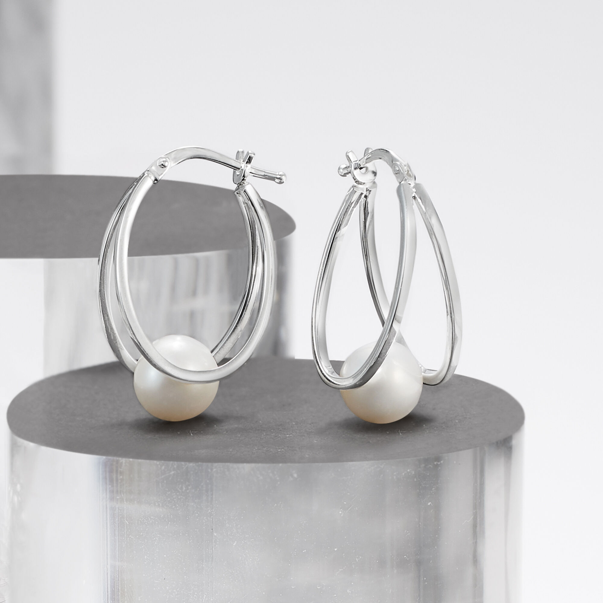 8-9mm Cultured Pearl Double-Hoop Earrings in Sterling Silver. 1″