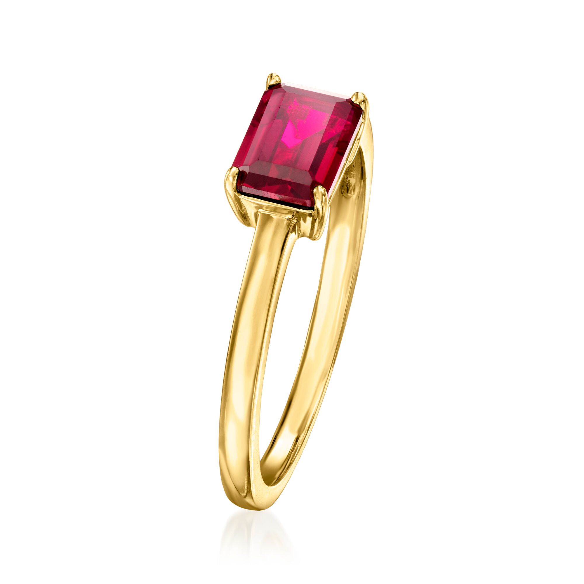 .80 Carat Emerald-Cut Lab-Grown Ruby Ring in 18kt Gold Vermeil