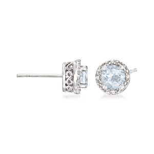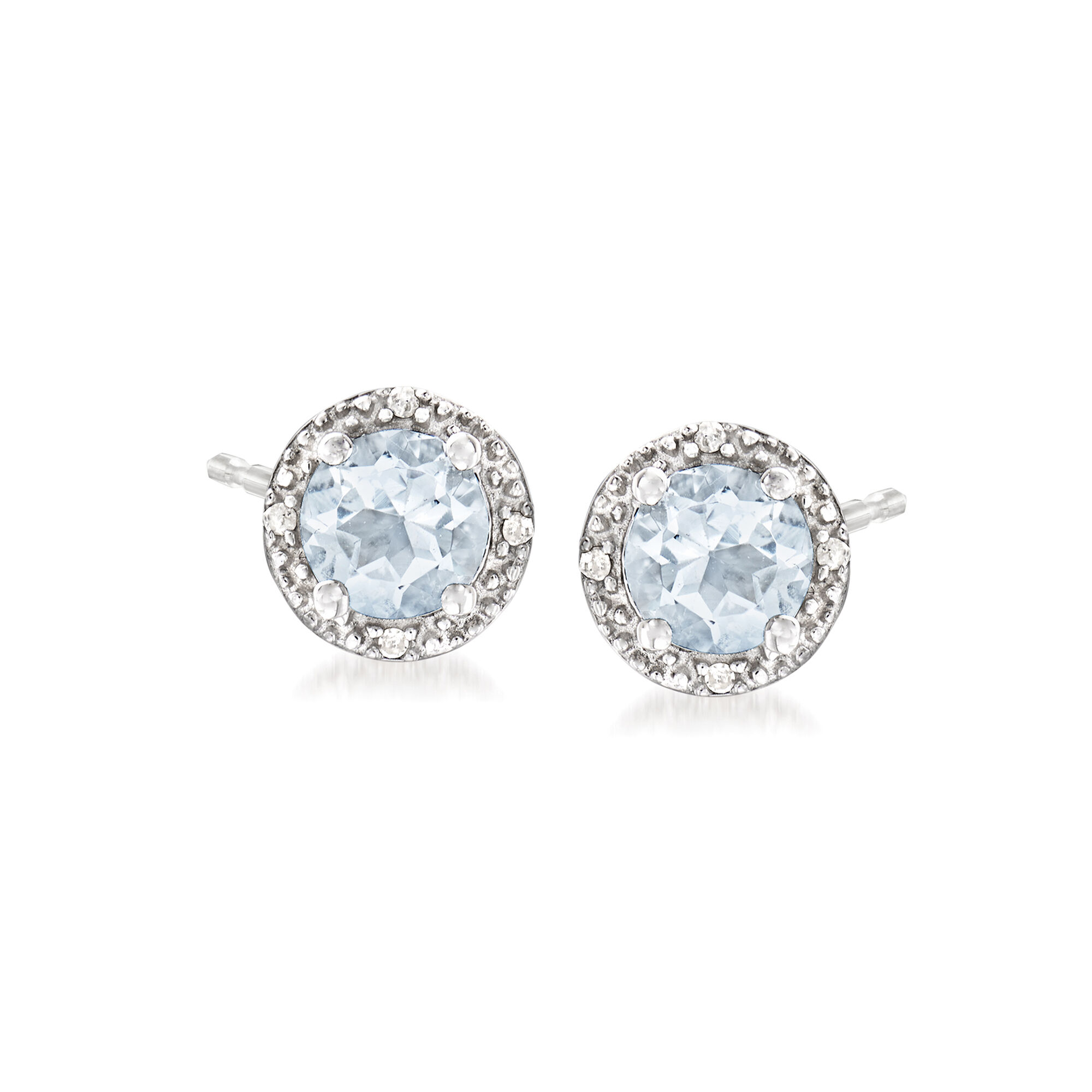 .80 ct. t.w. Aquamarine Stud Earrings with Diamonds in Sterling Silver