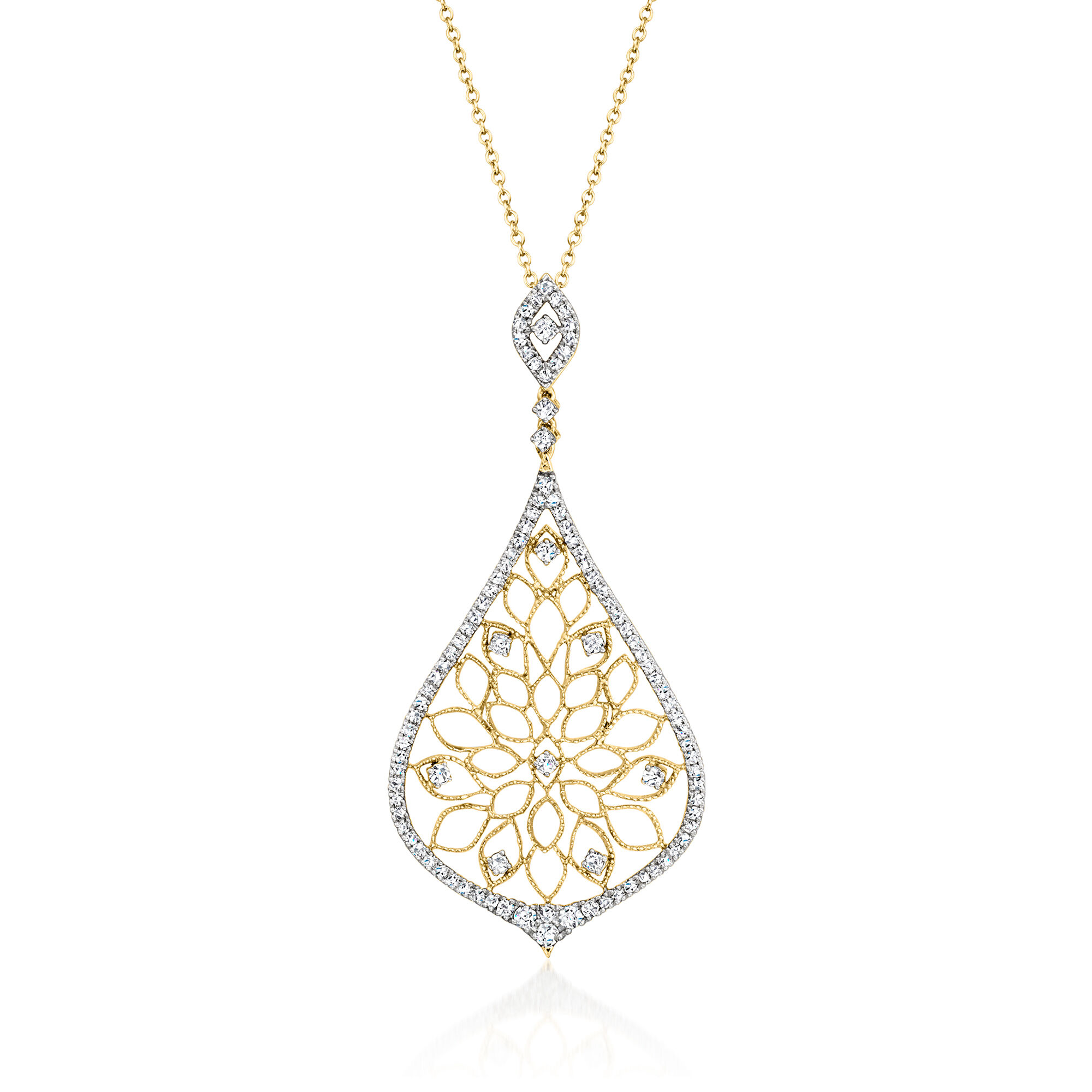 .80 ct. t.w. Diamond Openwork Pendant Necklace in 18kt Gold Over Sterling. 18″