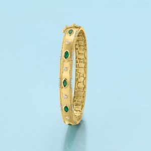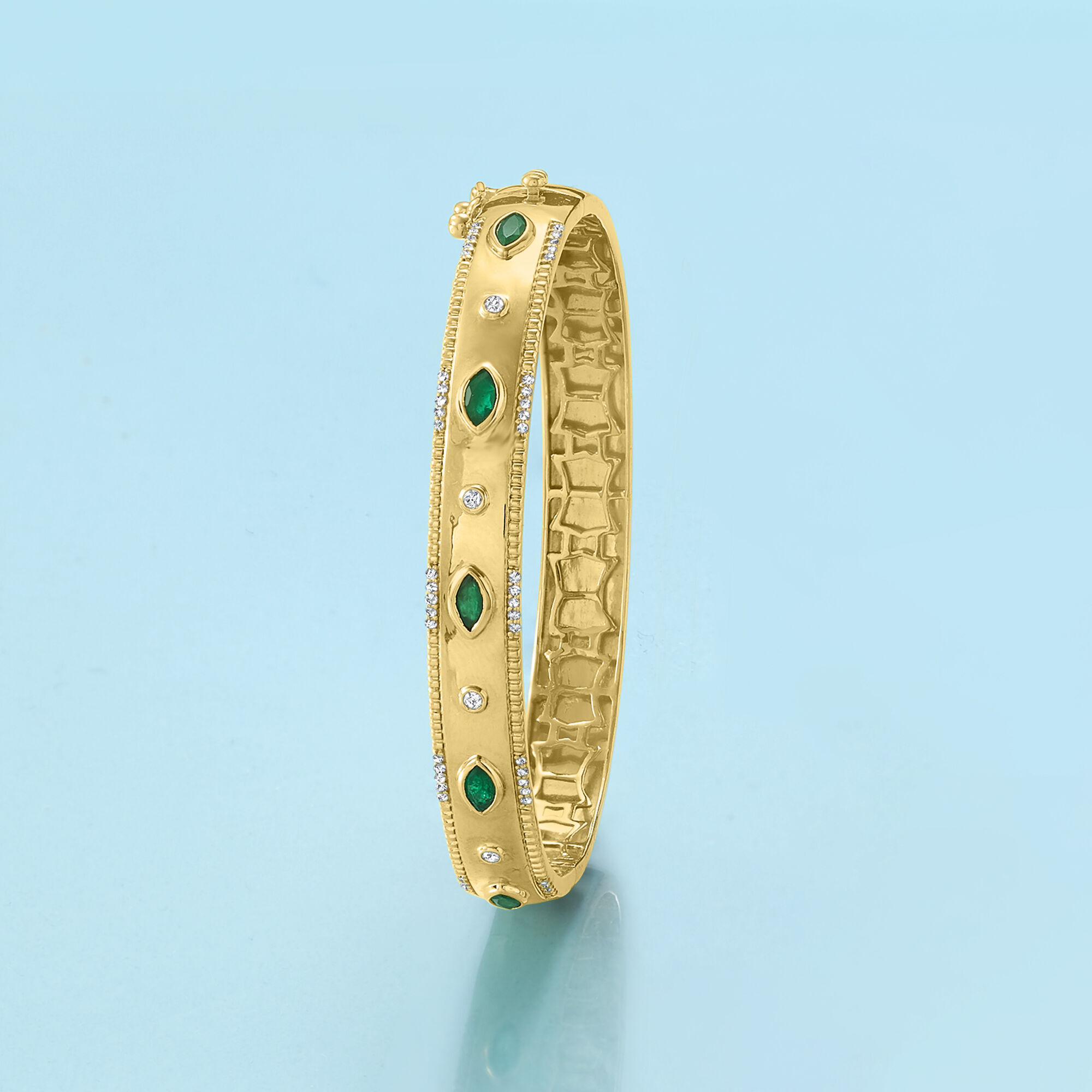 .80 ct. t.w. Emerald and .26 ct. t.w. Diamond Bangle Bracelet in 18kt Gold Over Sterling